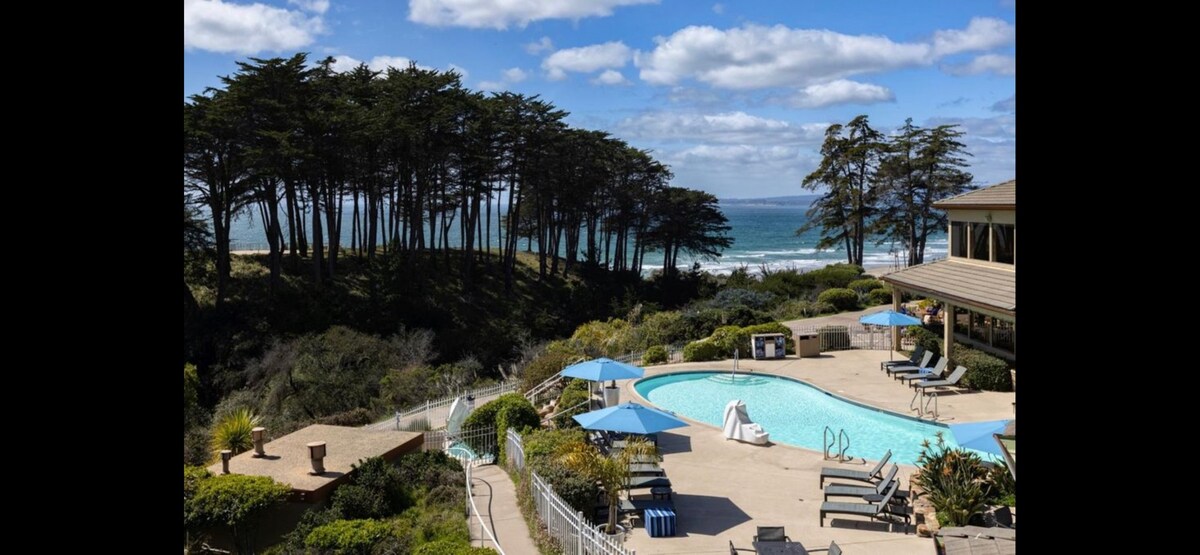 Gran espai de dues habitacions a Marina, Califòrnia. El complex turístic es troba a la platja i arribes a la recepció de l'Hotel Sanctuary (directament al costat). Aquest apartament té dos dormitoris amb un llit «king size» a l'habitació principal i dos llits individuals al segon dormitori, a més d'un llit «queen murphy» a la sala d'estar. També hi ha una cuina completa i una rentadora/assecadora, juntament amb una sala d'estar còmoda. A més, disposa d'accés als serveis del complex hoteler (parc infantil, piscina, banyera d'hidromassatge) i a la platja.