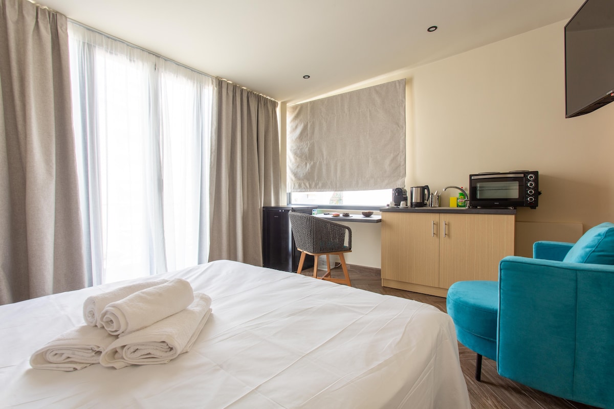 Studio No 205 in Halkidiki offers 25 sq.m. and can accommodate up to 2 people. You have one bedroom and a private bathroom with easy access to all areas without stairs. The apartment includes a fully equipped private kitchen, air conditioning, Wi-Fi, television, and a balcony with city views. This comfortable double room is ideal for couples or friends, providing all modern amenities and serving as an excellent base for exploring Chaniotis and Halkidiki.