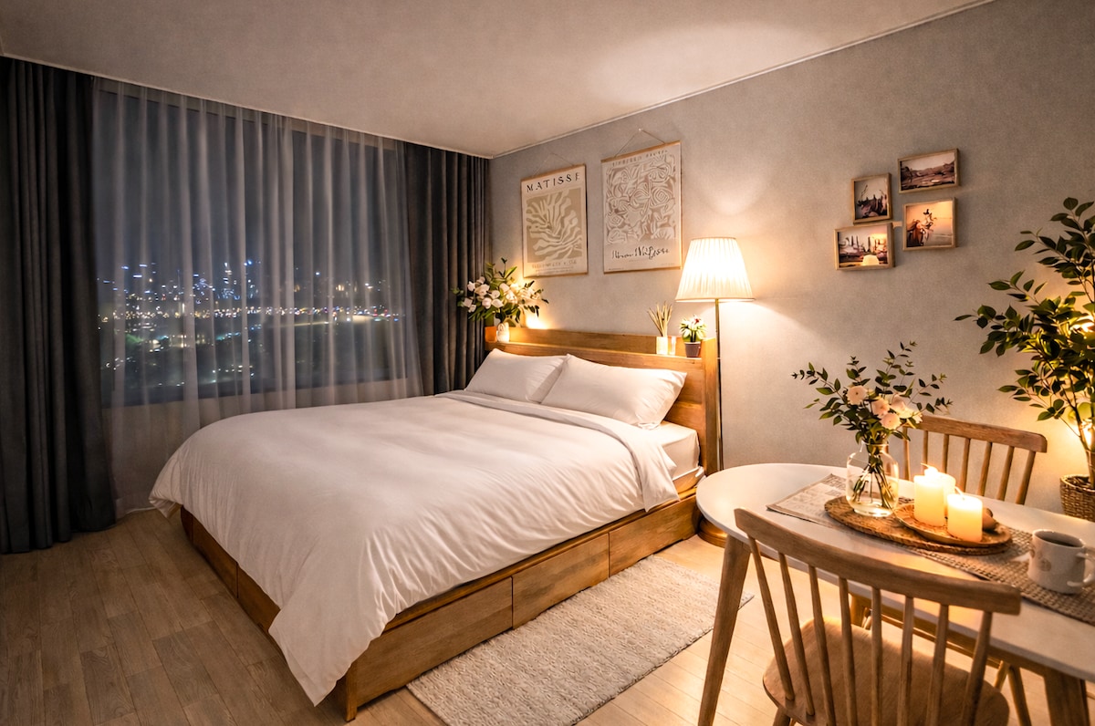 바쁜 일상에서 편안히 머물 수 있는 작은 쉼의 공간, 그린스테이입니다🌿 송도 달빛축제공원역 인근에 위치해 대중교통 접근성이 좋으며, 인천공항과도 30분 거리로 여행, 출장, 입·출국 전후 숙소로 편리합니다. 가족·연인·어린아이 모두 편안하게 머물 수 있는 따뜻하고 안정감 있는 분위기의 공간으로, 여행부터 비지니스까지 부담 없이 이용하실 수 있습니다. 일상의 무게를 내려두고, 편안히 쉬어가세요🌱