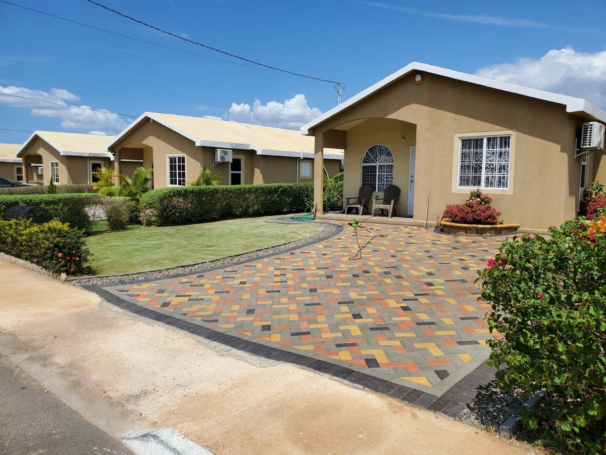 Et dono la benvinguda a casa meva! Una nova casa de dos dormitoris situada a prop de la frontera de St. Catherine i Kingston, en una comunitat tancada d'estil rural tranquil·la i relaxant. Aquesta localització ofereix accés de 12 minuts a Kingston, 8 minuts a Portmore, 10 minuts a Spanish Town i en uns 3 minuts podràs accedir a l'autopista que porta a Ocho Rios. Això vol dir que podries pujar a les cascades del riu Dunn en 45 minuts. L'espai està totalment equipat per fer que l'estada sigui el més còmoda possible. Vine i gaudeix!