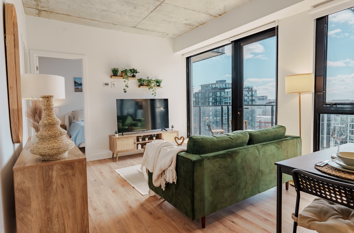 Et donem la benvinguda a Maison Mosaïque – Glassbrick Edition, un allotjament d’un dormitori d’avantguarda al Boulevard Saint-Laurent, al cor del Plateau. Ideal per a parelles, viatgers en solitari o estades més llargues, ofereix un dormitori independent amb llit «queen size», una distribució oberta més lluminosa i més privacitat que un estudi típic, a pocs passos del mural de Leonard Cohen i d’alguns dels llocs de menjar més emblemàtics de Mont-real.