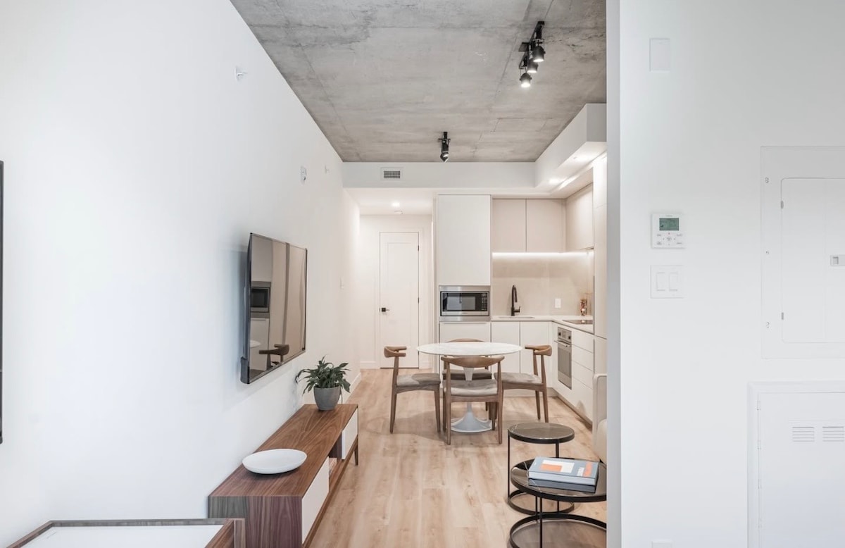 Elegant apartament d'un dormitori al centre | Terrassa semiprivada i confort modern Descobreix la combinació perfecta de sofisticació urbana i comoditat en aquest elegant apartament d'un dormitori, situat al cor de Mont-real. Amb un disseny minimalista, acabats de fusta càlids i una llum natural suau, aquest espai ofereix una escapada serena a un dels barris més dinàmics de la ciutat.