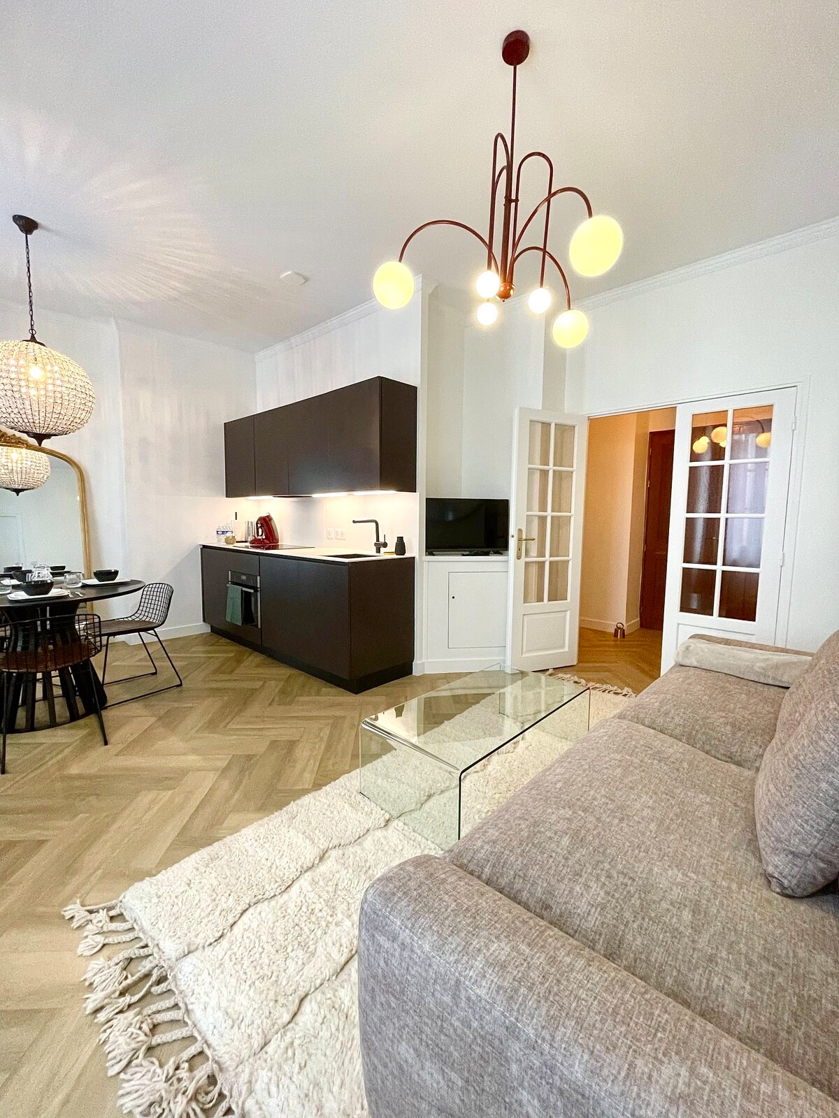 A 5 minuts a peu del mercat de Nadal i del centre de la ciutat, situat al cor de la ciutat, en un edifici Haussmann de molt alt nivell amb ascensor, el magnífic cocon és un dúplex de 75 m2 totalment equipat amb nous. Decoració càlida i coconada en un bany de llum, tot s'ha pensat per fer que la teva estada sigui tan agradable com sigui convenient. Trobaràs el lloc perfecte per deixar les maletes.