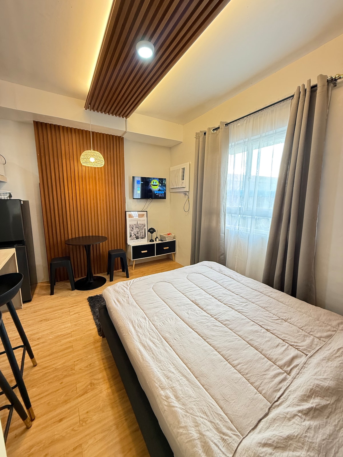 Aquest espai únic té un estil propi. S'ha creat per gaudir d'un ambient de natura on l'elegància i la comoditat es combinen. + Tenim Netflix i Amazon Alexa per al teu entreteniment. + Podem emetre rebuts de BIR per a empreses. + Hi ha una assecadora a l'interior de la unitat + Accés independent amb codi segur a través del nostre pany intel·ligent automàtic + El balcó mostra una bella posta de sol i vistes a la ciutat + A poca distància a peu del centre comercial Limketkai Mall i d'accés fàcil a The Coffee Project a l'altre costat del carrer.