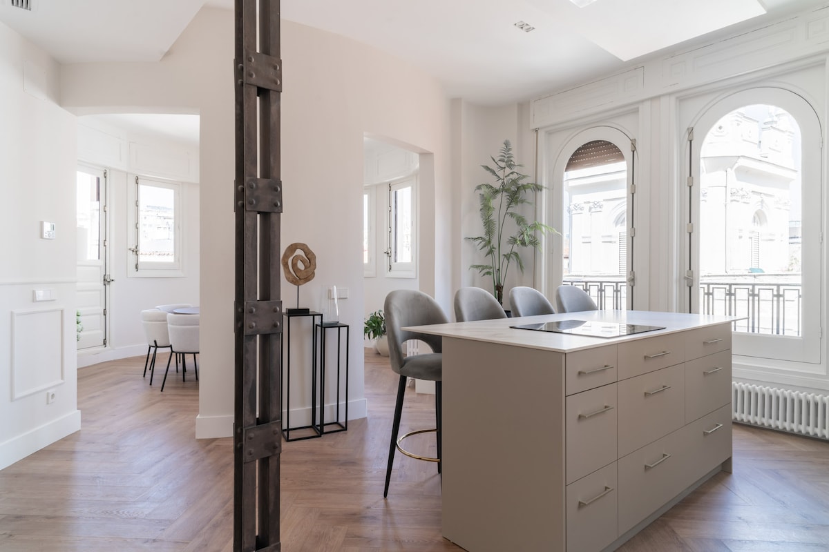 Unbeatable apartment of 145 square meters, located in Madrid to explore the city, just a few minutes walk from Puerta del Sol, Plaza Mayor, Plaza Sta. Ana, Chueca,... An apartment with spectacular design thought exclusively for the comfort of the guest, with everything you need for your visit to Madrid.