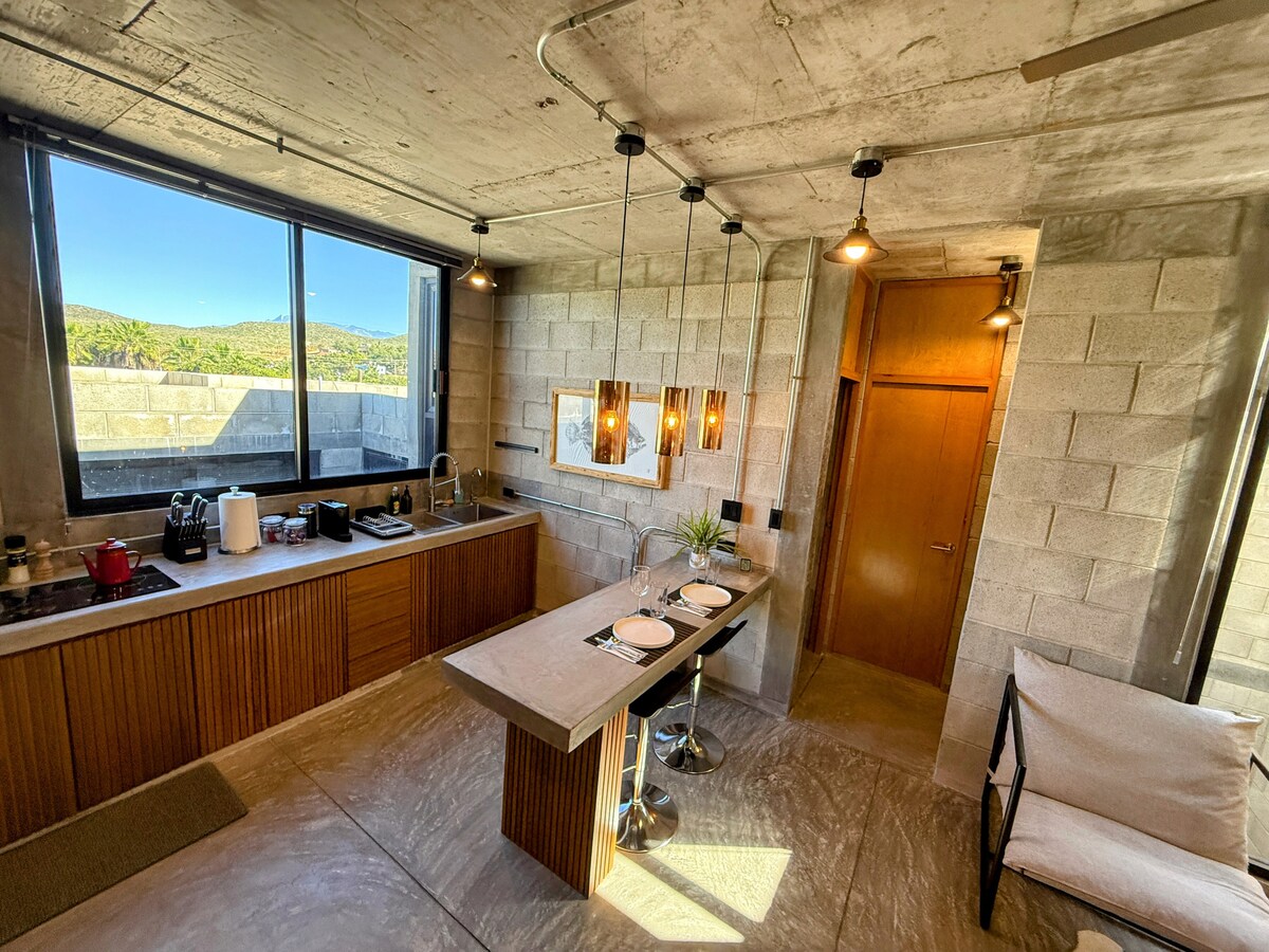 No es troba més a prop de Playa Los Cerritos! El nostre apartament és una suite espaiosa amb una terrassa a primera línia de platja per fer surf o gaudir d'una de les postes de sol més boniques de Baja California. L'espai té tot el que necessites per viure a la platja: - Un dormitori principal i dos banys. - Un llit King size per a la teva comoditat. - Un sofà a la sala d'estar per al petit o el amic que t'agrada. - Una cuina per preparar la pesca del dia. També hi ha 2 AC (a la sala d'estar i al dormitori)