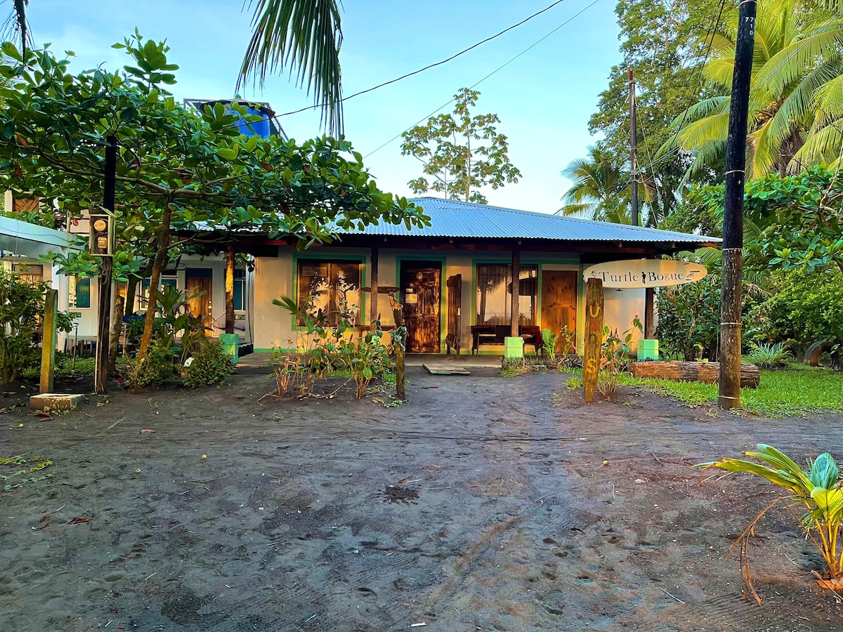 Som una família local de tortugues. Situat davant de la platja de tortugues on desoven tortugues verdes. Estem a cinc minuts del moll principal. El nostre principal tresor que oferim als nostres clients és l'atenció personal, un lloc molt net i tranquil, especial per a famílies o persones que volen descansar al peu del mar Carib. Tenim aire condicionat, que és molt important ja que la tortuga està molt humida i és gairebé impossible dormir sola amb un ventilador.