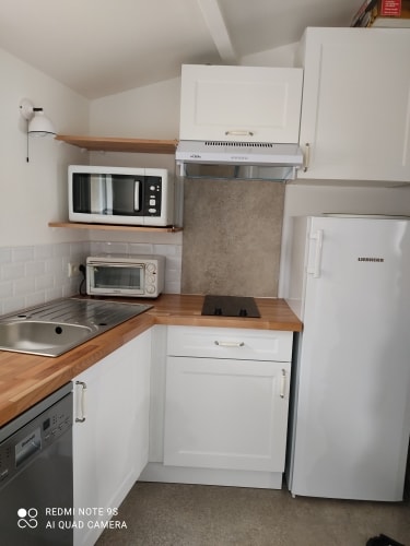 Per a una estada d'una nit, un cap de setmana o una setmana, vine a recarregar les piles en una càlida caseta de fusta, sobre pilotes i amb tota la comoditat ! Gaudiràs d'un servei d'hotel, es fa el llit (queen size), es proporcionen tovalloles i s'inclou la neteja i desinfecció de l'habitació. La banyera gran promet moments de relax. La zona de la cuina et permet ser independent.