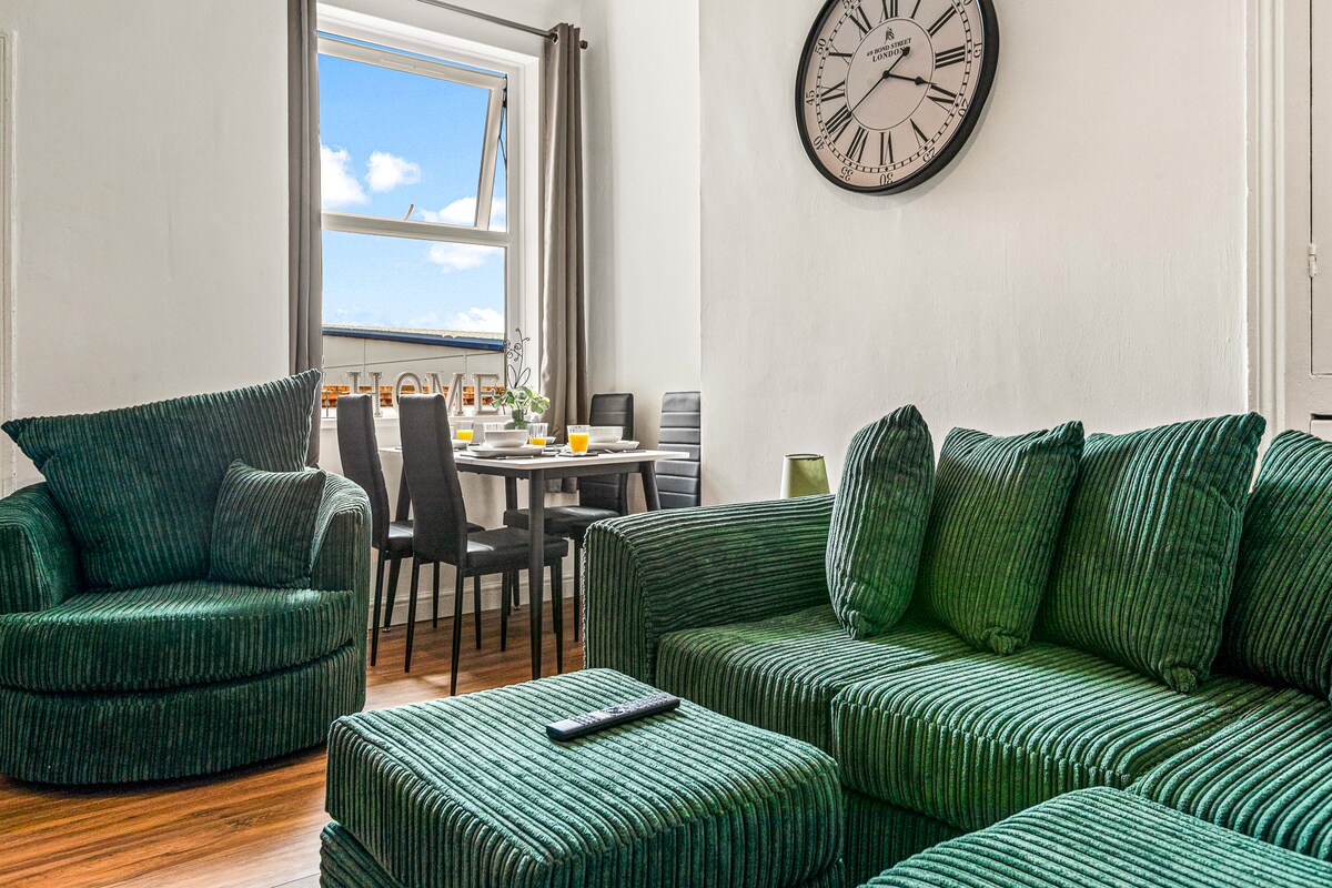 Pis de luxe de 2 habitacions, a la planta baixa, sensació de casa al cor de Derby City Centre, zona tranquil·la, garantint una estada relaxant. Ideal per a viatgers de negocis, professionals, contractistes, famílies i parelles. - Disseny elegant, de planta oberta - Televisor intel·ligent, Netflix, Prime Vide, aplicacions - Llits de luxe i prèmium, sofà llit - Cuina totalment equipada i menjador contemporani. - Banys elegants - Rentadora, planxa - Edifici segur - APARCAMENT GRATUÏT davant del pis. - Pis a la planta baixa
