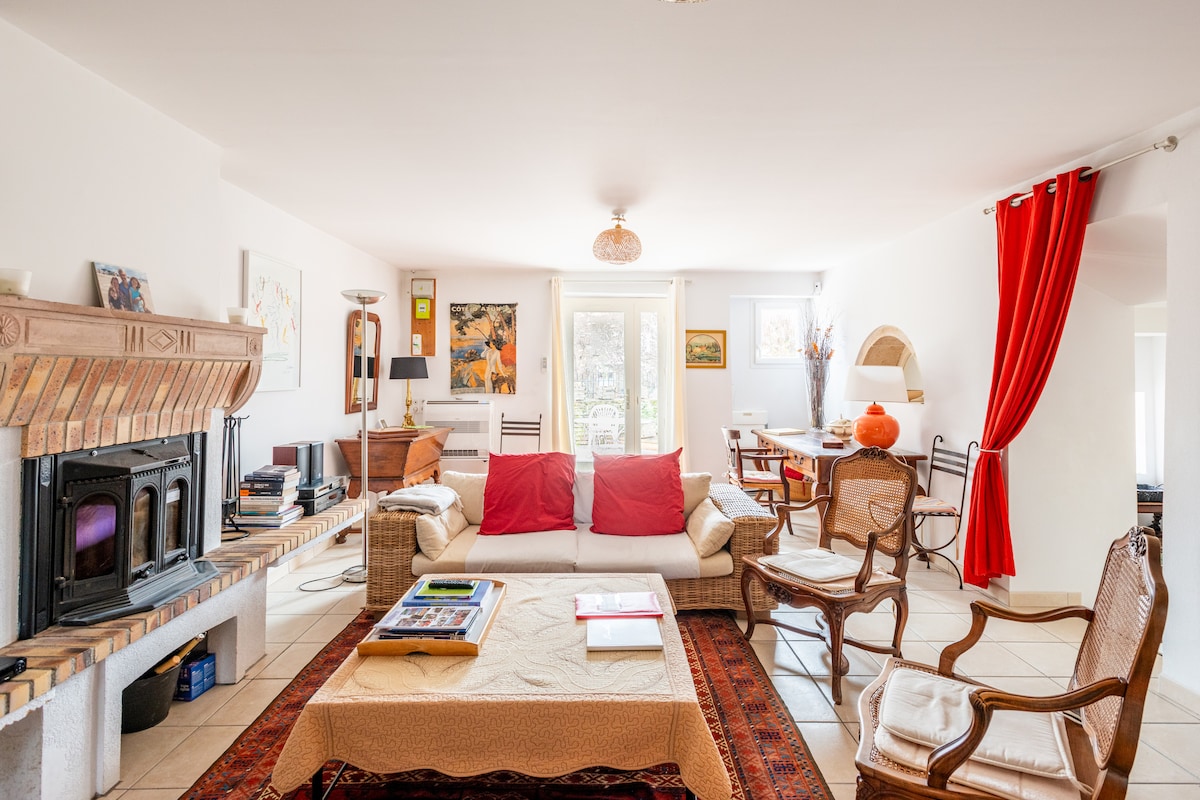 Casa rural familiar tranquil·la, a 5 minuts de Tournus, amb jardí i molts jocs infantils. Allotjament espaiós, molt net i perfectament equipat, ideal per a una estada familiar serena o una parada relaxant de camí al sud. ⭐ Dúplex de 4 estrelles de 70 m² amb aire condicionat, terrassa equipada i aparcament privat. 2 dormitoris, 2 banys, 2 lavabos separats, roba de llit excel·lent. Entrada independent, propietat tancada, llits fets a l'arribada, tovalloles incloses, rentadora, rentaplats, televisor connectat.