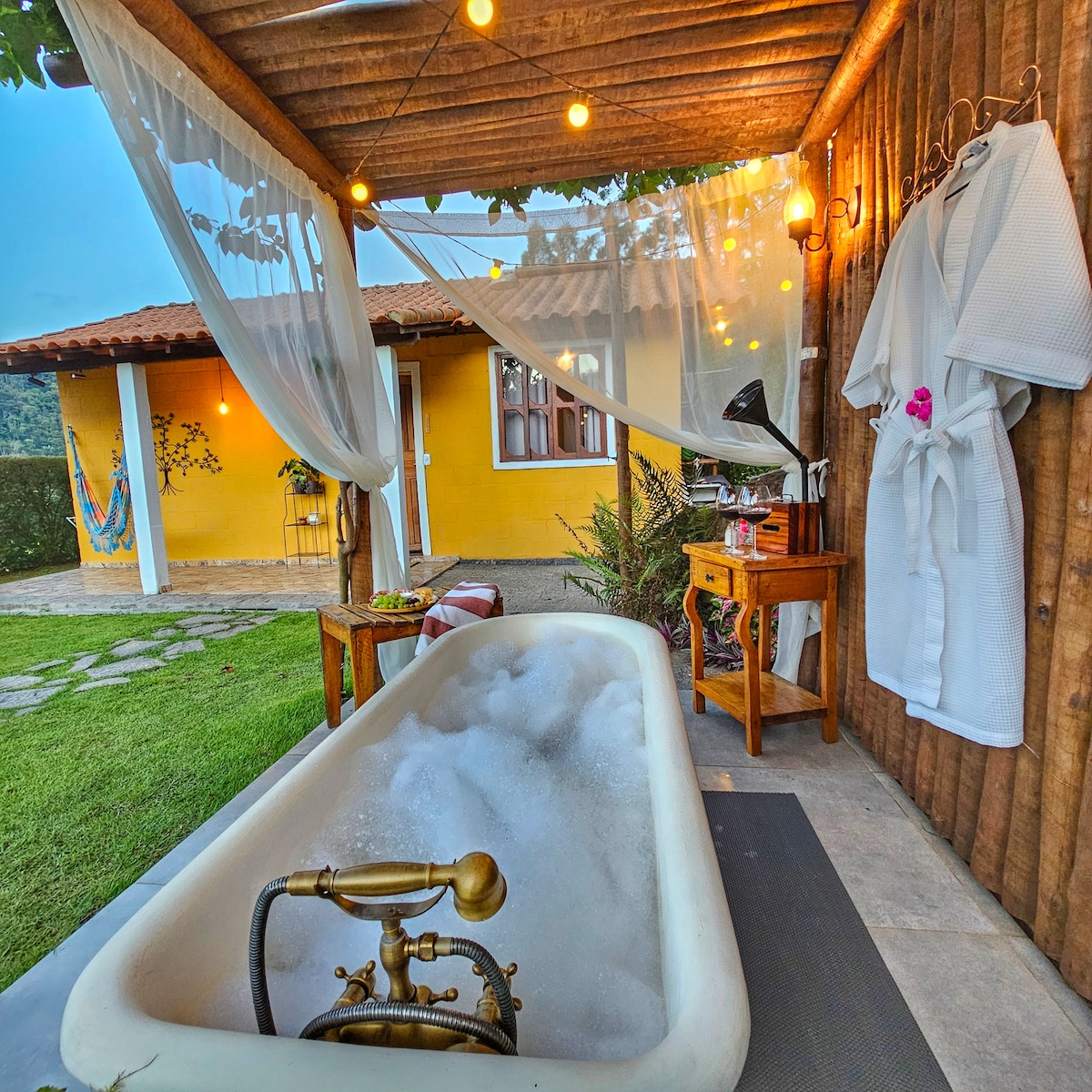 Vine i gaudeix de la privacitat, la comoditat i la calidesa que ofereixen les Highlands! A 5 km de São Pedro da Serra/Nova Friburgo, oferim allotjament en xalets de fusta, amb jardí dissenyat per Burle Marx Landscaping i una vista impressionant. - Banyera d'hidromassatge - El xalet té fogons, paelles, estris de cuina, cafetera, forn elèctric, cafè en pols, sucre, edulcorant, minibar, plats, coberts, etc. No servim esmorzar. - Arribada a partir de les 14:00 i sortida fins a les 12:00 h.
