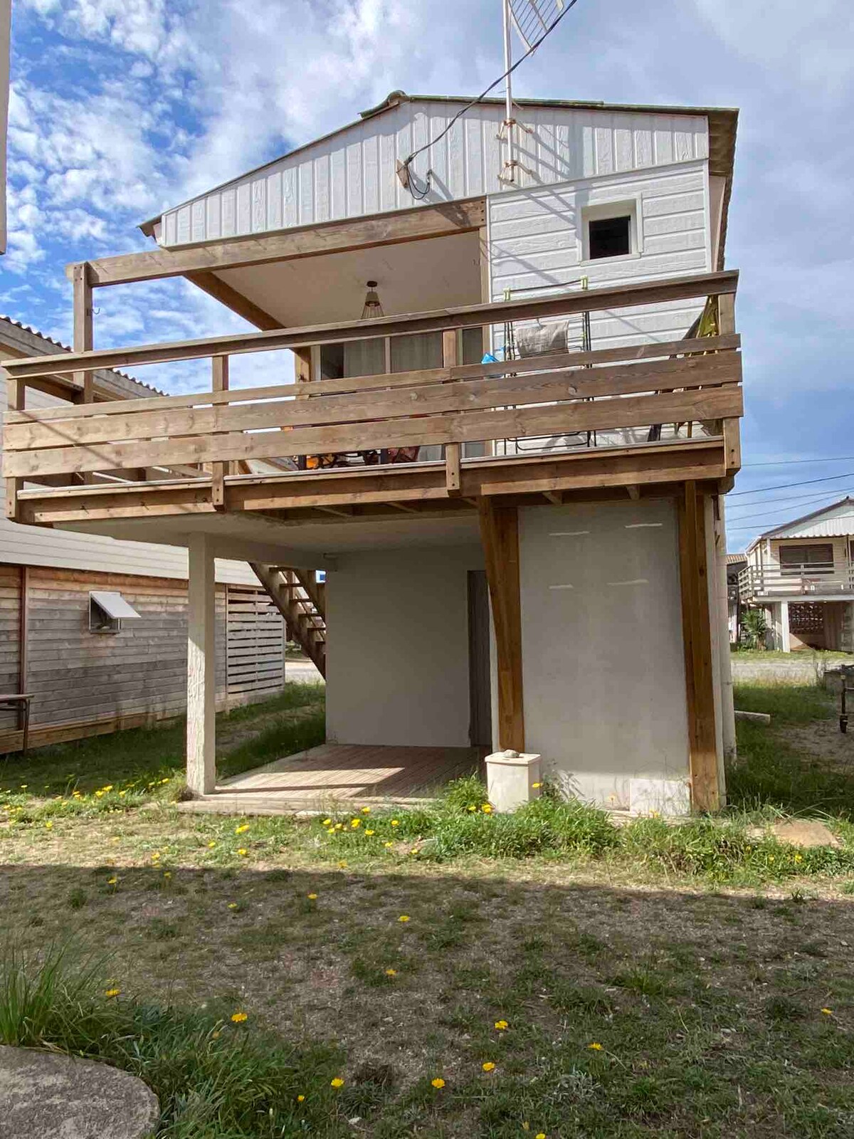 Xalet de fusta típic. Està compost per: - a la planta baixa: 3 dormitoris, dutxa/wc, accés a la terrassa de la planta baixa, escales interiors/exteriors. - A la planta baixa: 1 dormitori amb bany/WC (obert), cuina, sala d'estar, accés a una terrassa de 30 m². Jardí tancat amb zona de barbacoa i dutxa. Situat des del mar (5 minuts a peu) i botigues (3 minuts a peu) en una zona molt tranquil·la de La Plage des Chalets. Disposa de tots els serveis: rentaplats, rentadora, cafetera, wifi, aire condicionat...