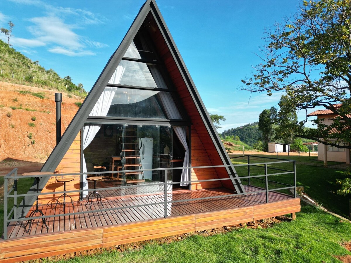 Micro casa com privacidade , ar condicionado, banheira de imersão , pé direito duplo com mezanino, mix de decoração industrial e rústica . Sustentável, 100% energia elétrica produzida aqui . O chalé possui self check in , wi fi , smart tv, cama queen size com lençois 200 fios , ducha aquecida a gás, ducha higiênica, cortinas black-out , geladeira , fogão , microondas, sanduicheira , cafeteira nespresso, churrasqueira, piscina compartilhada 3 chalés e uma vista maravilhosa das montanhas .