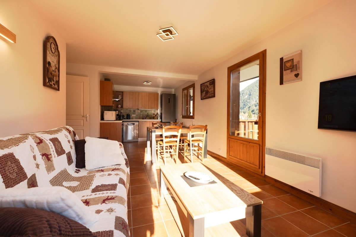 Vine a descobrir aquest apartament ultra còmode amb vistes i una terrassa orientada al sud. Al cor de Champagny en Vanoise, a 2 minuts de la piscina/spa obert fins al 14 de setembre de 2025 i A 1 minut de la telecabina que porta a la zona esquiable. ~Hivern: descobreix la gran zona d'esquí: PARADISKI Champagny , la Plagne, les Arcs. - Piscina i spa a 2 minuts a peu. - Estiu: coneix els íbex i els isards al bonic parc nacional de la Vanoise. Es proporcionen llençols i tovalloles de bany