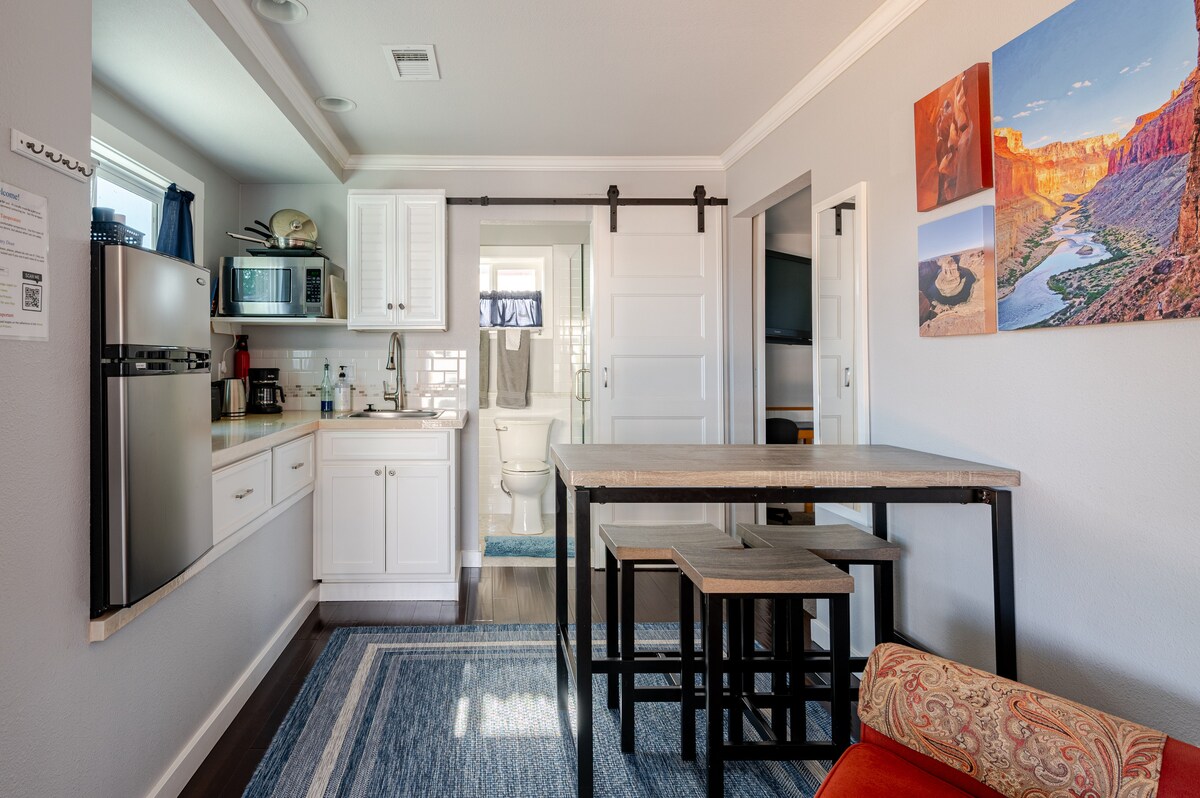 Estudi privat annex amb serveis acollidors i una ubicació privilegiada a Chandler! Gaudeix d'un llit «queen size», una cuina petita, un bany complet, un espai de treball, una rentadora/assecadora, wifi, Netflix i una cafetera Keurig. Relaxa't al teu pati privat amb llums de nit o explora el parc que hi ha a l'altra banda del carrer. Aparcament còmode i bicicletes disponibles. A pocs minuts de casinos, centres comercials i restaurants, i és ideal per fer excursions d'un dia a Tucson, Sedona, Flagstaff i el Gran Canyó. Reserva l'escapada perfecta avui mateix!