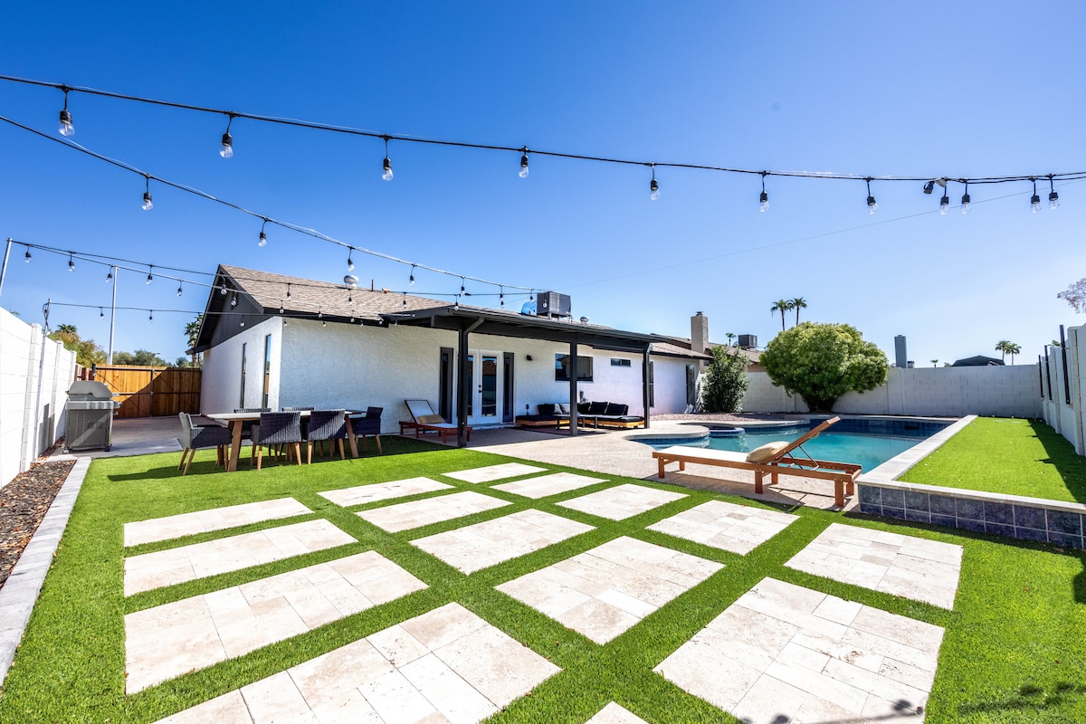 Amagat en un barri tranquil hi ha un refugi modern de mitjans de segle, amb una nova piscina brillant i un jacuzzi calent, tot situat dins d'un pati aïllat que fins i tot la envidia dels cactus locals. Entra a un interior seleccionat professionalment que se sent directament d'una revista de disseny. Deixa que les teves habilitats culinàries brillin a la nostra cuina totalment equipada. Acabat de renovar de dalt a baix, complementat amb una barbacoa a l'aire lliure i un menjador perfectes per a aquells banquets màgics al capvespre. Aquest allotjament és per a tothom