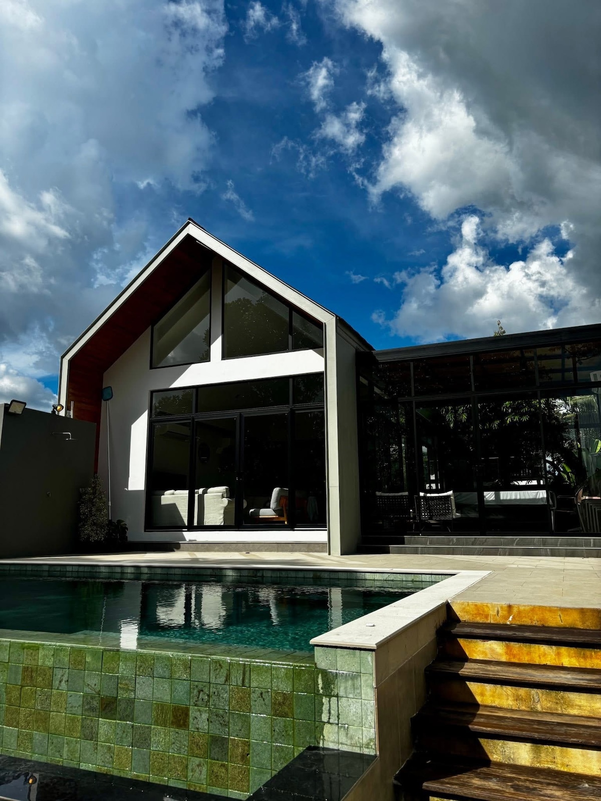 Gaudeix del luxe a la nostra vil·la amb piscina a Tha Mai, Chanthaburi, amb un tema blanc i daurat captivador amb un toc d'elegància de la masia. Submergeix-te en un refugi de comoditat i mística modernes, situat en una terra que es creu que té joies espirituals. Relaxa't en habitacions elegants, gaudeix de la piscina resplendent i gaudeix de l'encant del luxe inspirat en pedres precioses. Descobreix les mines de pedra preciosa, els mercats i gaudeix de la rica història cultural. Reserva la teva estada ara i gaudeix d'una escapada única i opulent a Chanthaburi.