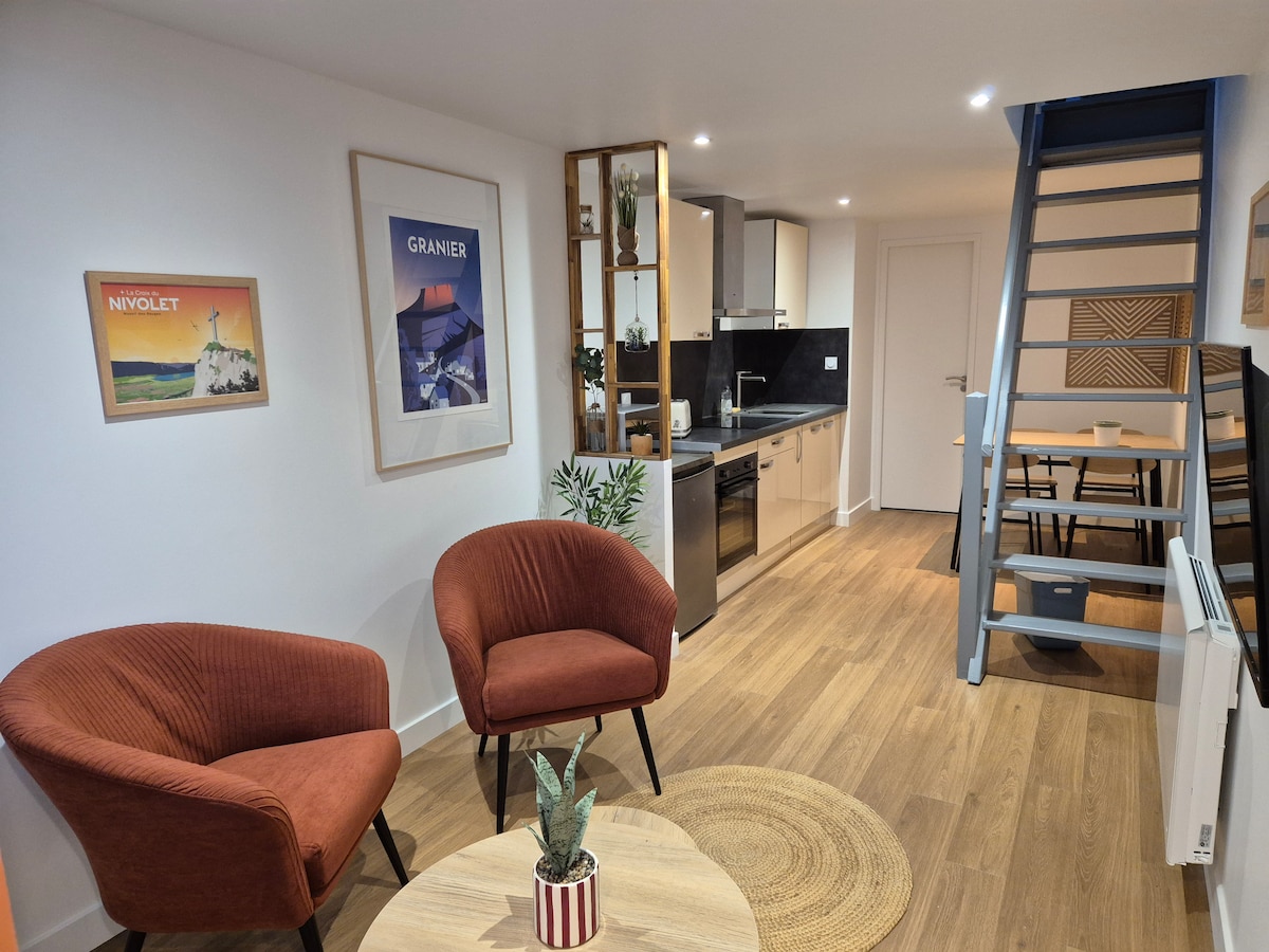 Pis de 31 m² decorat amb bon gust a la cinquena planta amb ascensor, sense passar per alt. Valorat amb 3 estrelles per gites de France Gran balcó de 10 m² amb vistes al Granier. Perfectament moblat per a 2 persones. Situat a 5 minuts del centre de la ciutat. Petit supermercat als peus de l'edifici, així com una carnisseria, bugaderia, farmàcia, perruqueria, ... Entrada i sortida autònomes Aire condicionat de fibra Espai d'aparcament privat a l'aire lliure (aparcament tancat per porta per obrir amb distintiu)