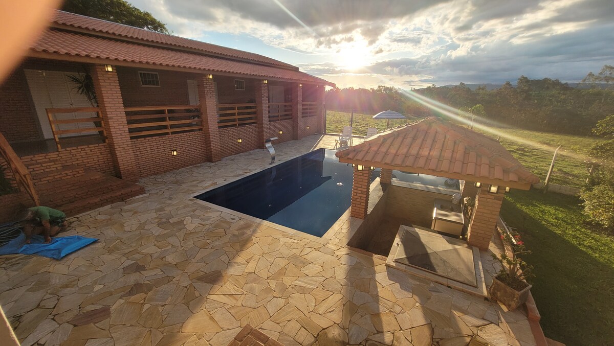 Chacara com piscina grande. Uma suite com ar
