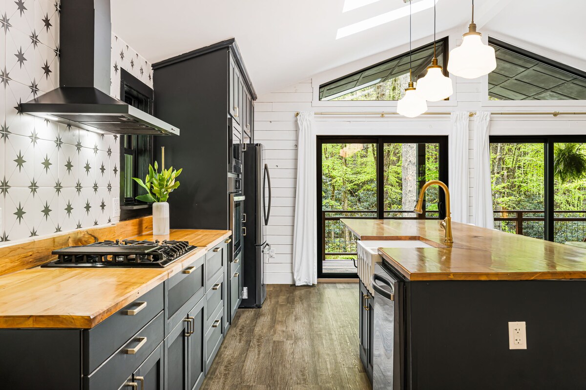 Escape to luxury at the Hillside Treehouse brought to you by the biophilic hospitality brand 'Hide Inn Seek'. Located in Highlands NC, just 1.5 miles from main street, this newly built home sits boldly among the trees allowing you to indulge in nature while enjoying luxury accommodations. The 58 step ascent leads you up to a treehouse experience like no other. Check out our newly listed sister property, Bird Nest Treehouse, designed just for couples—complete with a full spa experience!