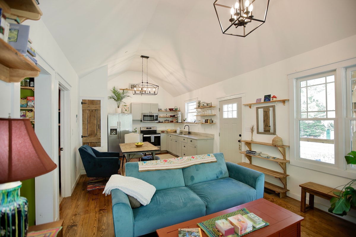 Amagat al cim d'un turó còmodament situat a 25 minuts del centre de Nashville i de tots els esdeveniments urbans. Construïda el 2020, aquesta casa de 1.300 peus quadrats es troba a 1,5 hectàrees d'un preciós terreny boscós. Una gran sala oberta i espaiosa amb sostres abovedats. Porxo davanter cobert, així com una terrassa als arbres a la part posterior per a les celebracions de la posta i la sortida del sol. Maravillosament privat i tranquil a només 15 minuts de la I-40. Ens encantaria que vinguessis a visitar-te!