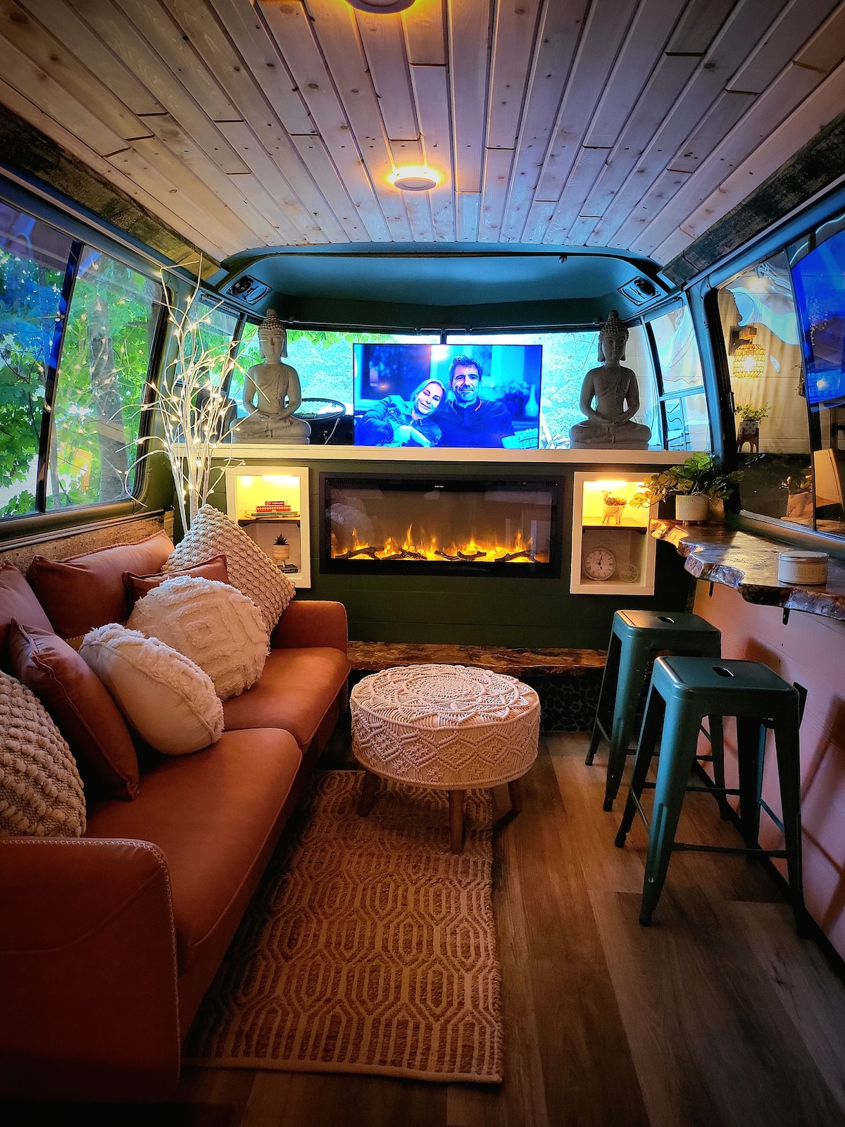 Dissenyada per Travis i Jessica, aquesta caseta Retro GMC "Bittersweet" és la caravana vintage definitiva per als viatgers que busquen una mica de luxe i un munt de caprici al centre del nord de Michigan. Adornat amb dormitoris acollidors que inclouen un matalàs king, roba de llit de somni i il·luminació íntima. Aquesta escapada aïllada és ideal per a parelles que busquen una mica de R&R lluny de l'enrenou de la vida quotidiana.