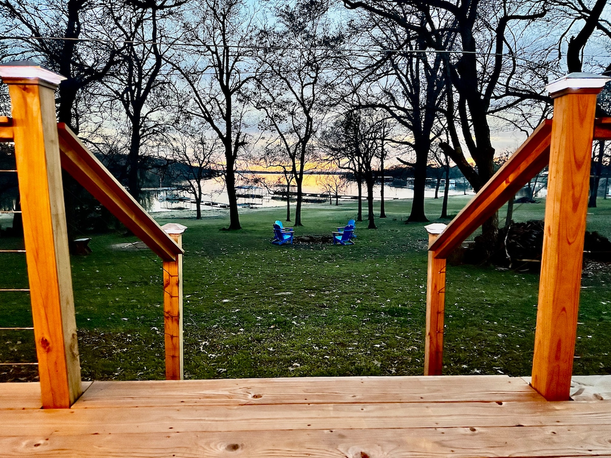 Relaxa't amb tota la família en aquest allotjament tranquil. Gaudeix del llac amb hores d'interminable diversió, natació i pesca. Torna a casa i gaudeix d'una cuina! Juga i asseu-te al voltant de la foguera i cuina gossos calents i rosteu dolços. No vull cuinar, estem a pocs quilòmetres d'alguns restaurants fantàstics. Després d'un gran dia de diversió, retira't als llits còmodes per dormir bé. Carro de golf proporcionat com a cortesia! Dues estacions de càrrega per al teu vaixell. Ho sentim, no s'admeten animals de companyia.