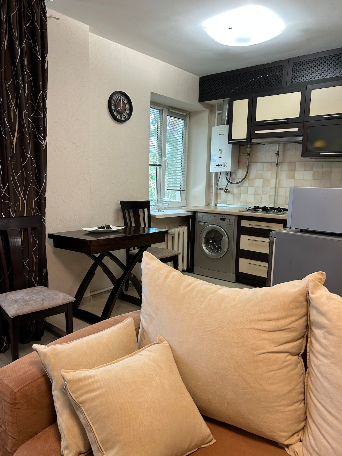 Un estudi de dues habitacions amb balcó es troba al segon pis d'una casa de l'època de Stalin al cor de la ciutat vella. Les reparacions importants es van completar el maig del 2020. Totes les finestres estan en un pati tranquil i ple de vegetació. L'apartament està totalment equipat per gaudir d'una estada còmoda. S'ha instal·lat un rentaplats per a la teva comoditat. Els serveis de taula i bany estan disponibles. No es pot fumar. A prop hi ha un parc, una plaça, un carreró per a vianants amb cafeteries i restaurants, un mercat, aparcament de pagament i gratuït, parades de transport.