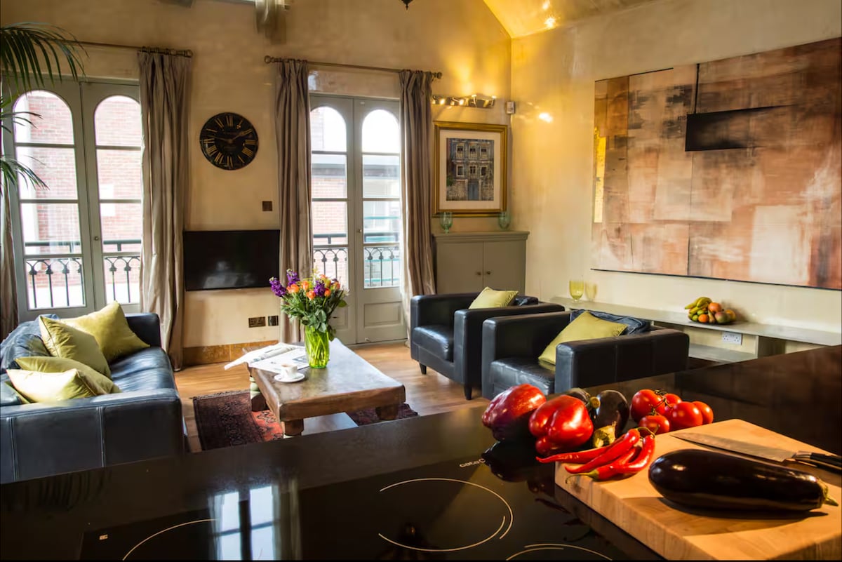 Recently redecorated, our spacious ground floor apartment, nestled within a converted 18th Century chapel, offers a quiet retreat in the heart of the Cotswolds. There are 2 bedrooms, a living/dining space, kitchen and large bathroom - all one level. Discover nearby attractions like Soho Farmhouse, Diddly Squat Farm, The Farmer's Dog and Daylesford Organic. You'll be based in the market town of Chipping Norton with its traditional pubs, boutique shops and even an independent cinema.