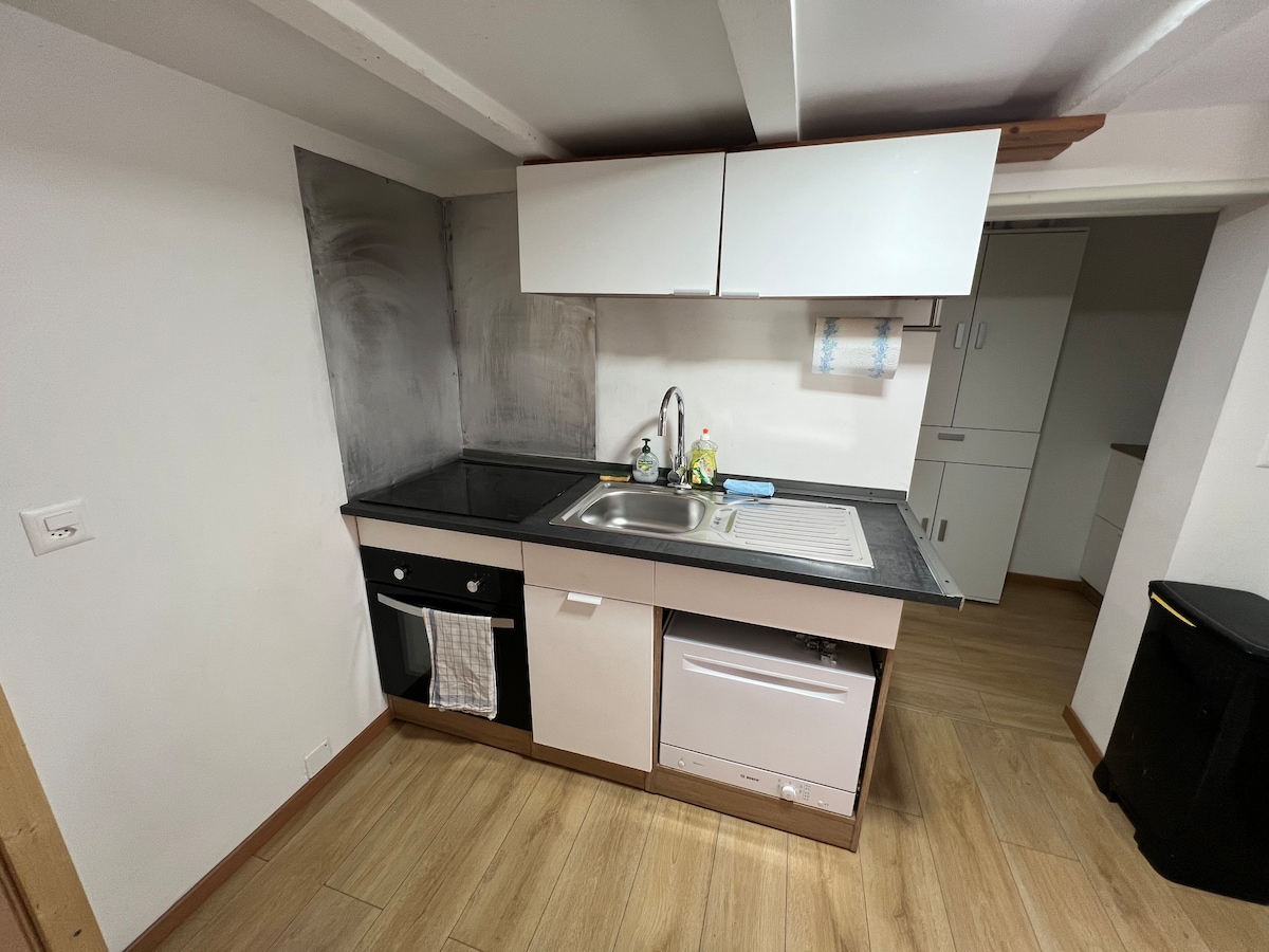 Estudi independent A prop de tots els serveis. Reformat. Dissenyat al voltant del tema del vi i la vinya. Cuina moblada. A la segona planta sense accés a l'ascensor. Hi ha vins Domaine. Excel·lent ubicació: - A prop de Montreux (Festival de Jazz, Mercat de Nadal), Château de Chillon, Réserve des Grangettes, Alpes Vaudoises, Lake Geneva - A peu: 70 Via Francigena i Via Valdensis - En bicicleta: 46 Tour du Léman i 1 Route du Rhone Habitació de bicicletes tancada a 100 metres sota petició
