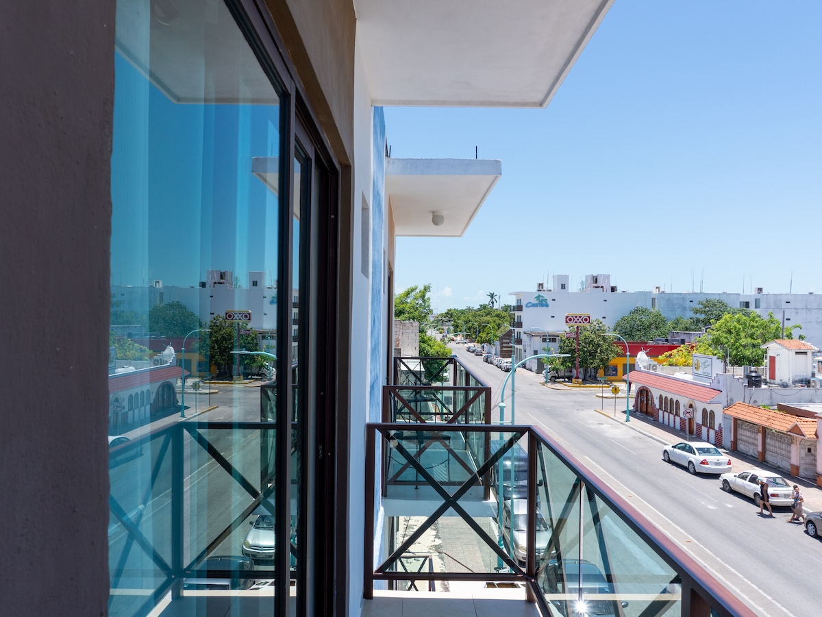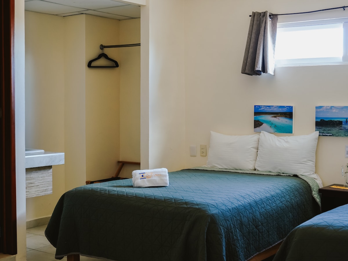 Mini hotel en el centro de Chetumal, recién remodelado, con habitaciones modernas, cómodas y totalmente equipadas: aire acondicionado, TV, baño privado, frigobar, área de trabajo y perchero. Ubicación estratégica para explorar Bacalar (30 min), Mahahual (1h30) y Tulum (2h), además del Boulevard Bahía (10 min) con restaurantes, bares y paseo frente al mar. Ideal para viajeros de placer o negocios que buscan comodidad, buena ubicación y fácil acceso a los principales atractivos.