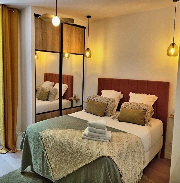 Nous avons entièrement rénové notre appartement en plein centre ville pour en faire un espace chaleureux et agréable à vivre. Tout est pensé pour votre confort : un salon accueillant, une cuisine équipée, une chambre avec une literie confortable et une salle de bain moderne. Vous y trouverez tout le nécessaire pour un séjour sans souci : WiFi, machine à laver, sèche-cheveux… Que vous soyez en voyage ou en déplacement, nous serons ravis de vous accueillir !
