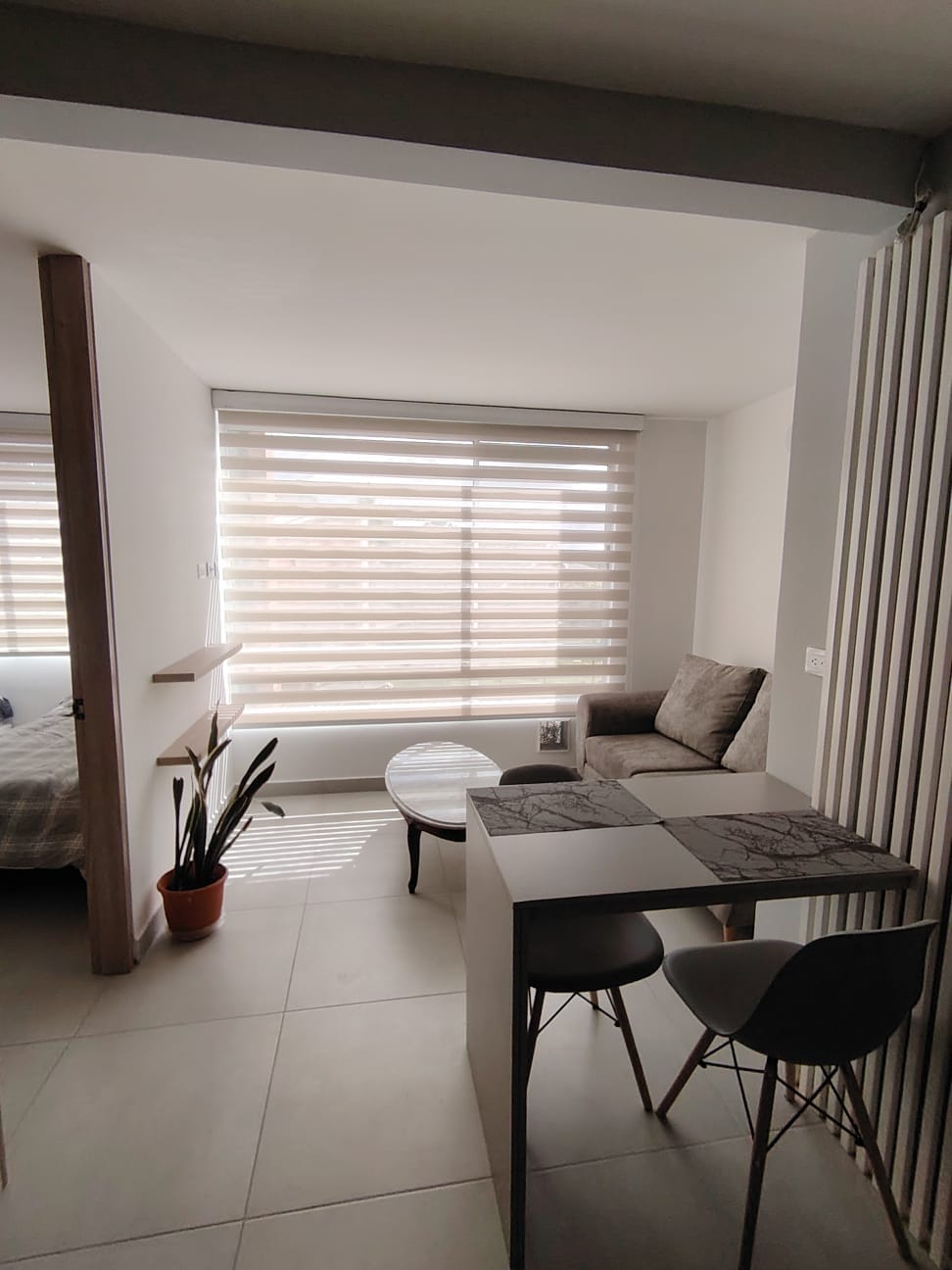 Pis estudi nou i modern a Chia, ideal per treballar o descansar. Disposa de llit doble, sofà llit, cuina equipada, bany funcional, zona de bugaderia, escriptori amb llum, televisor intel·ligent i barra de so. Boniques vistes, acabats de qualitat, wifi ràpid i una il·luminació natural excel·lent. Molt a prop de la Universitat de La Sabana, Centro Chía i Fontanar. Accés al jardí, a la terrassa, a la sala social i al transport públic. Ideal per a estades curtes o llargues, amb tot el que necessites!