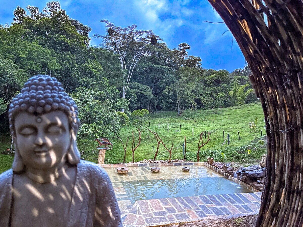 Una escapada a les afores de la vall d'aventures. Et donem la benvinguda a la nostra acollidora cúpula de glamping situada a les majestuoses muntanyes de San Gil, Colòmbia. Gaudeix d'unes vistes impressionants de la natura i del riu Fonce des de la privacitat del teu propi refugi. Aquesta encantadora cúpula és ideal per a parelles que busquen una escapada romàntica. Amb un llit «king size», una banyera decorada amb pètals i un ambient íntim, trobaràs el lloc perfecte per relaxar-te i tornar a connectar amb el teu ésser estimat.