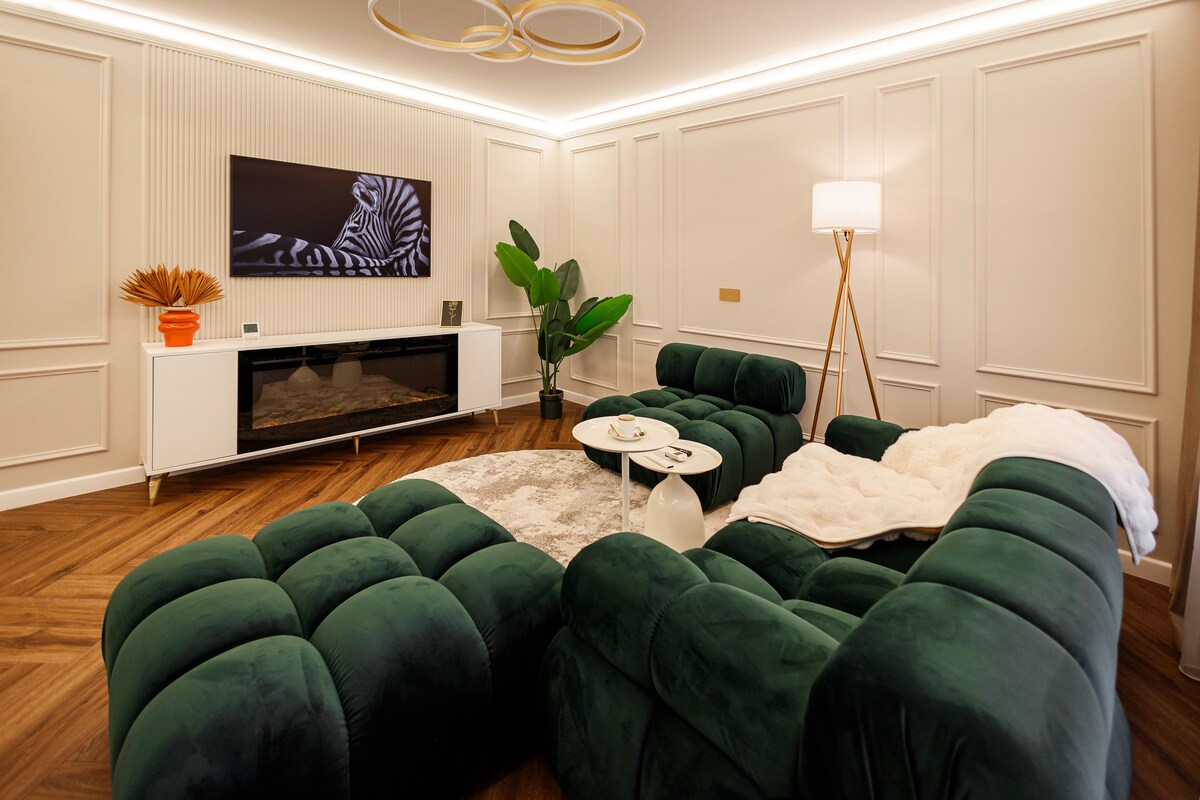 A uniquely and carefully designed, this apartment perfectly combines coziness with stunning Scandinavian accents. Situated in a new residential neighborhood, we go above and beyond to ensure a unique experience for our guests. Our home can accommodate up to 4 people and has its parking lot. The standout feature of this penthouse is the spacious terrace with a jacuzzi and a panoramic view over the mountains, being ideal for couples, business travelers, solo adventurers, or families (with kids).