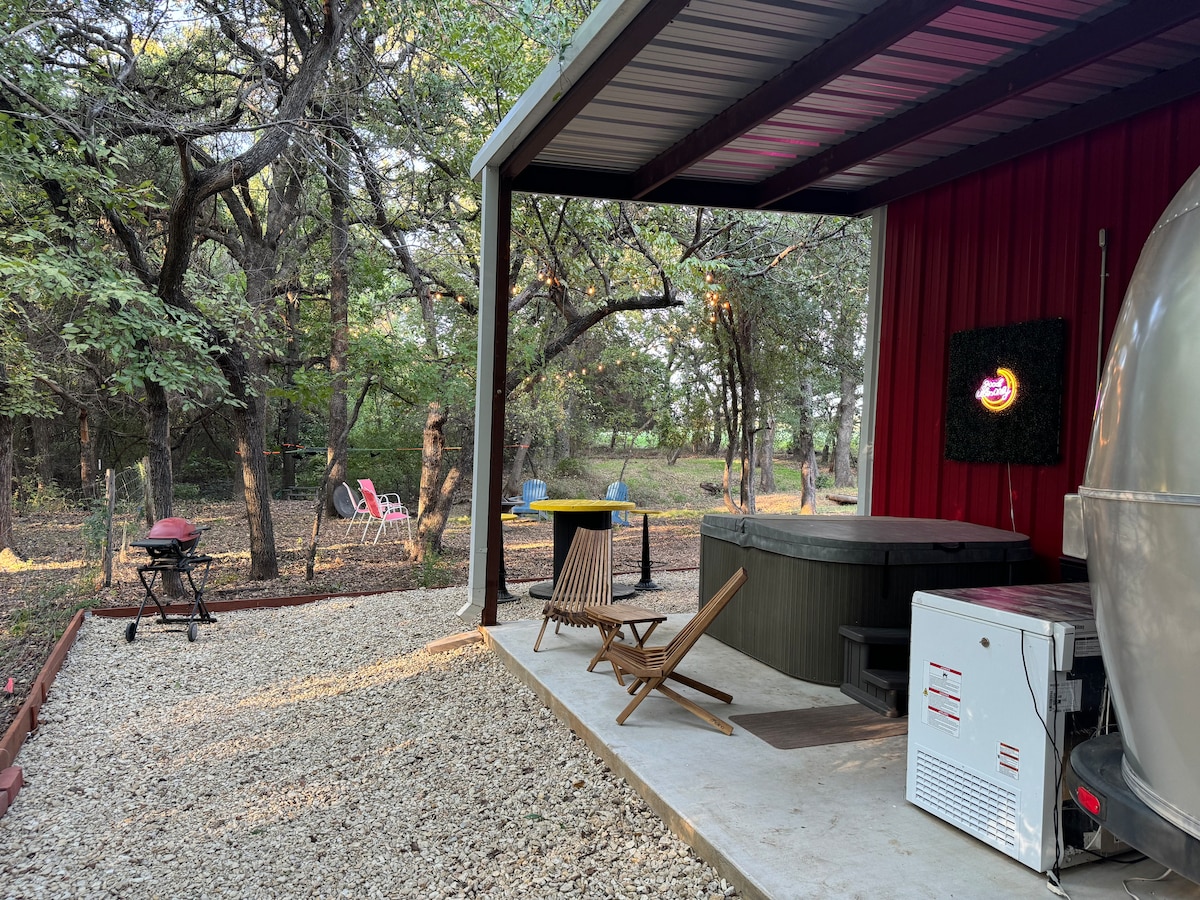 ACABAT D'AFEGIR «L'spa australià» Gaudeix de banyeres i dutxes a l'aire lliure amb aigua calenta i freda i d'unes vistes que et deixaran sense alè. Les casetes a Amaroo. «The Aussie» 1 de 2 casetes del ranxo Tranquil·la't en aquesta escapada única i tranquil·la. Boniques albes, molt privades, ruta de senderisme de 1,5 milles, cabina autònoma situada en un ranxo de 80 acres A 15 minuts del parc estatal Lake Mineral Wells, a 30 minuts del bonic llac Possum Kingdom airbnb.com/h/cabinsatamaroo