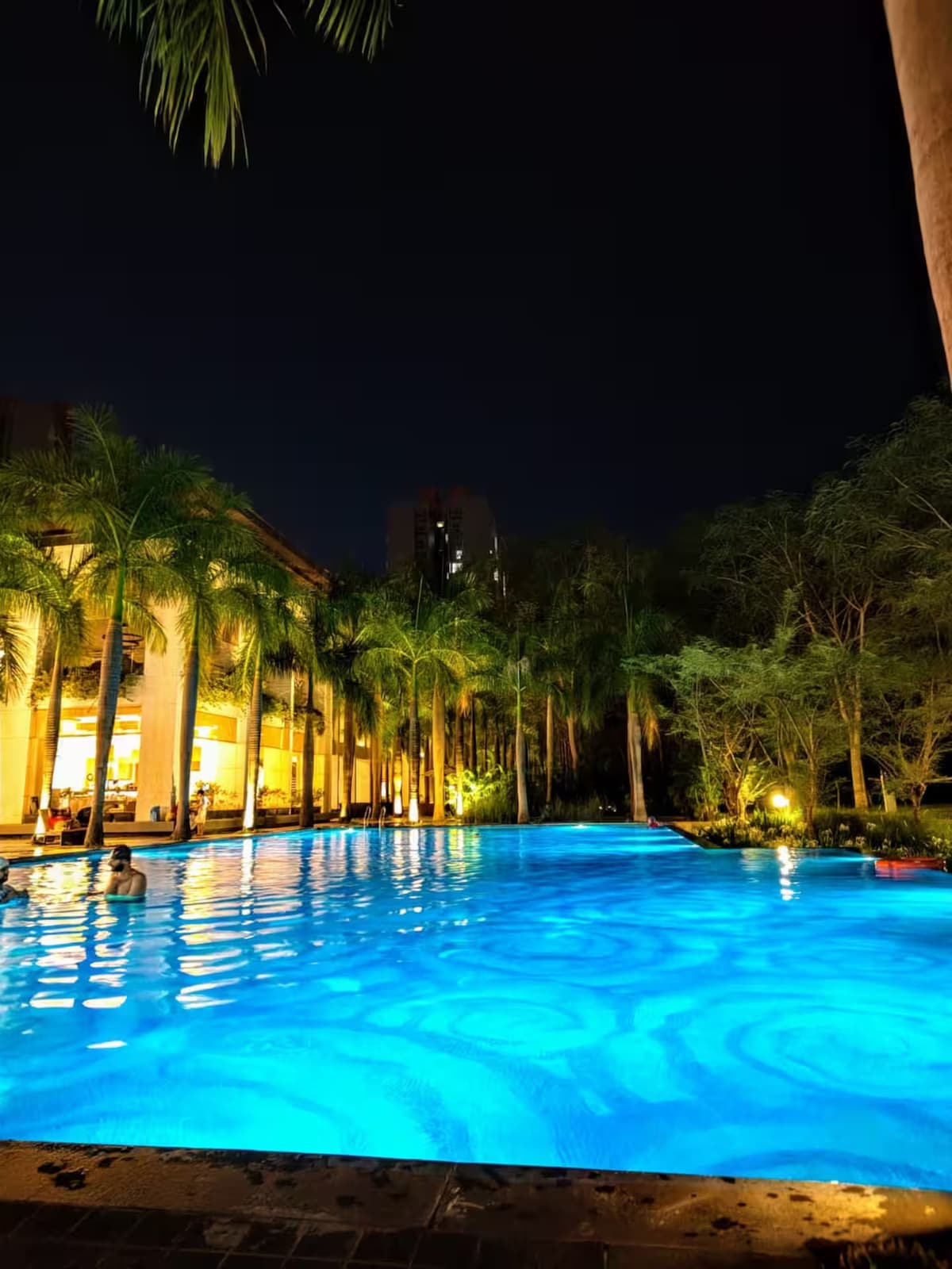Cap altre allotjament a Airbnb a Pune ofereix aquesta vista. Ho hem comprovat. Des del 23è pis, el camp de golf s'estén per sota, el riu Pavana es corba platejat a través de la vall i la serralada de Sahyadri sosté el cel occidental. A l'alba, les muntanyes es tornen daurades. A la nit, l'estadi MCA s'il·lumina i l'autopista es converteix en un riu de llum.
