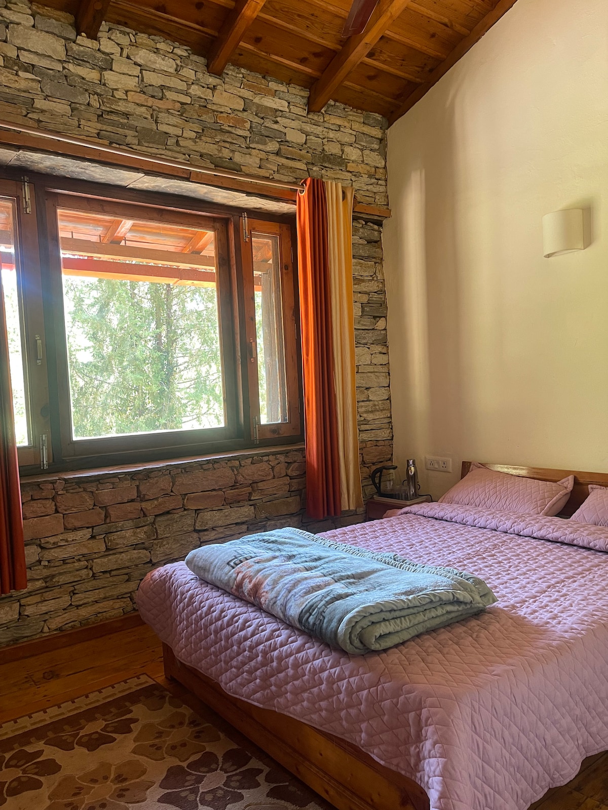 Ramia Kafal – Where Silence Becomes a Sound Welcome to Ramia Kafal — a wooden lodge tucked deep in the peaceful folds of Uttarakhand. With 4 beds, 2 bathrooms, and warm pine interiors, it feels like a cabin straight out of a mountain dream. Wake up to sunlight filtering through cedar trees. Sip chai with clouds floating right beside you. Walk barefoot on the grass and feel life slow down again. Here, silence isn’t empty — it’s full. Full of fresh air, birds, mountains… and you.