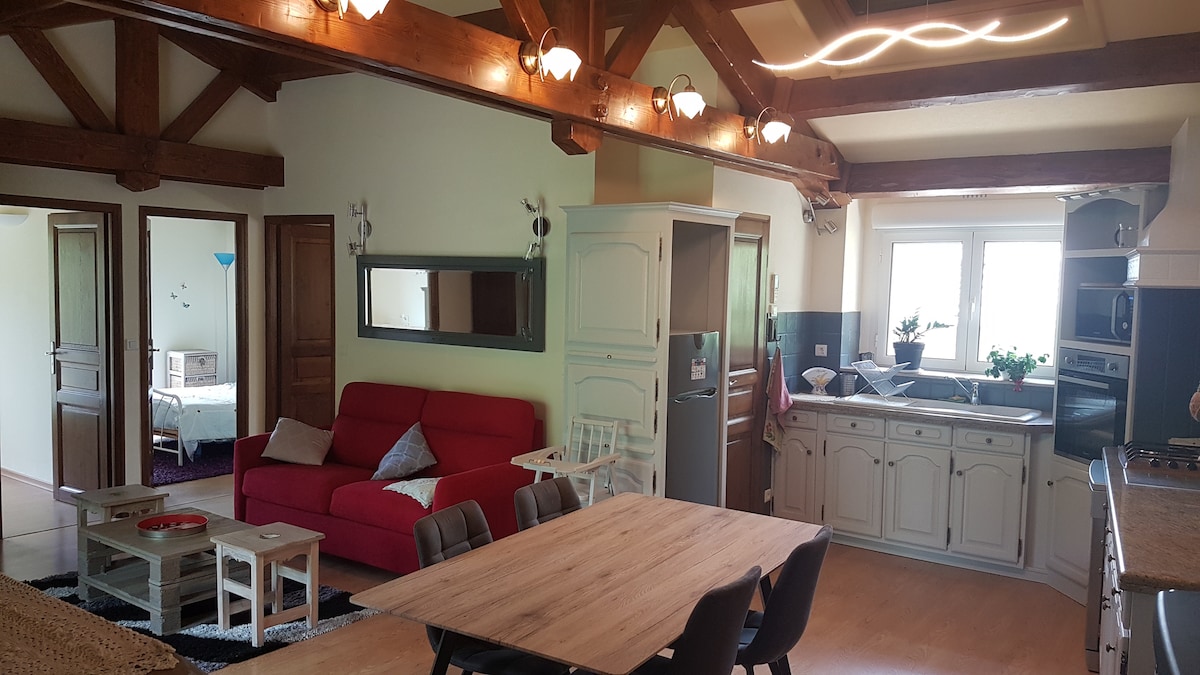 Aquest encantador estudi amb vistes de somni està situat al cor de l'Ardeche del sud. Amb un ambient antic i bonic, còmode i amb una vista preciosa! Un petit racó de paradís. Al matí et despertaran els bells de les ovelles i les alegres orenetes. Deixa't abraçar pels turons i les muntanyes verdes! Tant si decideixes descansar com si decideixes sortir a fer alguna cosa, aquí trobaràs la pau per recarregar les piles. L'estudi està a 10 minuts amb cotxe de les Termes de Vals les Bains.