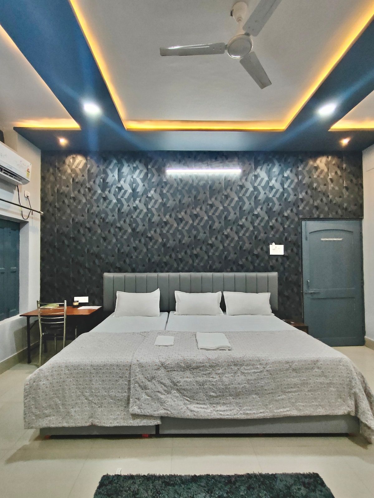 Serene Varanasi Luxury Homestay, a tranquil retreat in lush greenery. Featuring two interconnected bedrooms, this space comfortably fits families or small groups. Enjoy affordable luxury with a dedicated workspace, AC, and Wi-Fi. Perfect for families, remote workers, and spiritual seekers looking for a peaceful base in the holy city.