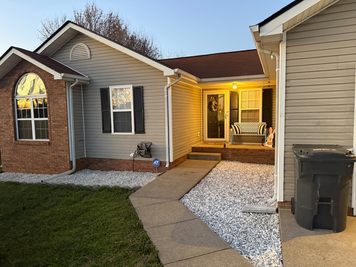 Relaxa't en aquesta tranquil·la casa de 3 dormitoris situada a la vora de Lafayette Rd. Aquest allotjament té 4 llits, 1 King, 1 queen i 2 llits individuals. Aquest allotjament es troba a minuts de Ft Campbell Blvd i del centre de Hopkinsville. A només 10 minuts de la porta principal de Ft. Campbell. Gaudeix d'una cuina completa, una sala d'estar i un menjador. La cuina està totalment equipada amb tot el que necessitaràs per cuinar i una cafetera Keurig. Oferim el wifi més ràpid disponible i 3 televisors intel·ligents perquè els hostes puguin gaudir-ne. Prohibit fumar.