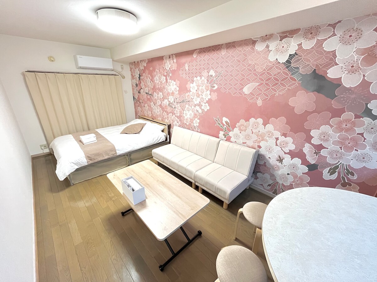 L'habitació té uns 30 m ² i pot allotjar fins a 5 persones, incloent-hi amics, famílies i parelles que viatgen junts. * Si reserves una habitació (un altre anunci) al mateix edifici, també pots fer-la servir per a grups de fins a 22 persones. < Punts recomanats > ★Completament privat (no hi ha altres hostes) Excel·lent ubicació amb excel·lent accés des del centre de la ciutat de ★Fukuoka Impressionant disseny de paper pintat amb una sensació de ★japonès ★Pantalla gran com un cinema ★Wifi gratuïta i projector Els matalassos d'alta qualitat també són molt populars al ★Japó (gaudeix d'un somni agradable) A pocs minuts a peu de ★supermercats, botigues, restaurants, aparcament de monedes, banys públics, etc. Tenim tot el que necessites, incloent-hi una cuina completa amb aire condicionat i calefacció, electrodomèstics i un joc complet d'estris de cuina.Pots fer servir l'allotjament per a viatges de negocis, estades curtes o llargues i altres usos. Pots negociar el preu ^ ^ Esperem la teva reserva!