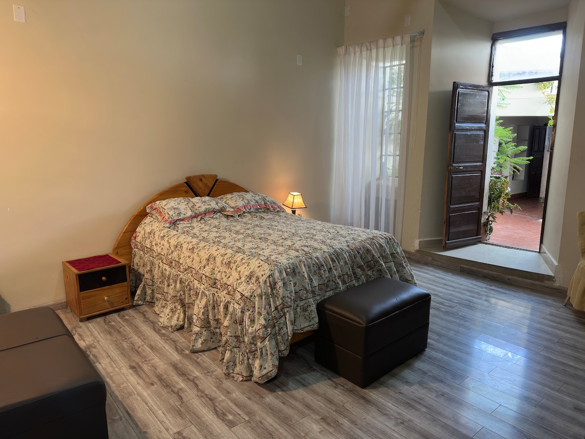 Private spacious main studio in a Sucre’s classic colonial house. 200 meters around you will find the main square, the central market, museums, pubs and restaurants. Equipped with everything for a comfortable stay in this picturesque city. This rare studio with two balconies and lots of natural light, rustic wooden floor and a comfortable king size bed with bedside tables and reading lights. A large mirror and dining table with two chairs. There is a good WiFi connection and a writing desk.