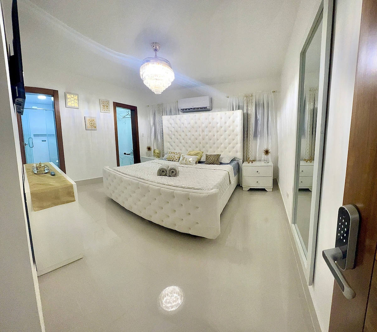 Pis modern d'un dormitori a Airbnb, cuidat i decorat amb un disseny minimalista. Perfecte per a una parella o un sol viatger! Situat al cor de la ciutat de Santiago de los Caballeros, a la República Dominicana. A prop del centre de la ciutat: Monument, centres comercials (Agora Mall), restaurants, bars, hospitals i botigues. Tot el que necessites estarà a menys de 5 minuts. A 15 minuts en cotxe de l'aeroport STI.