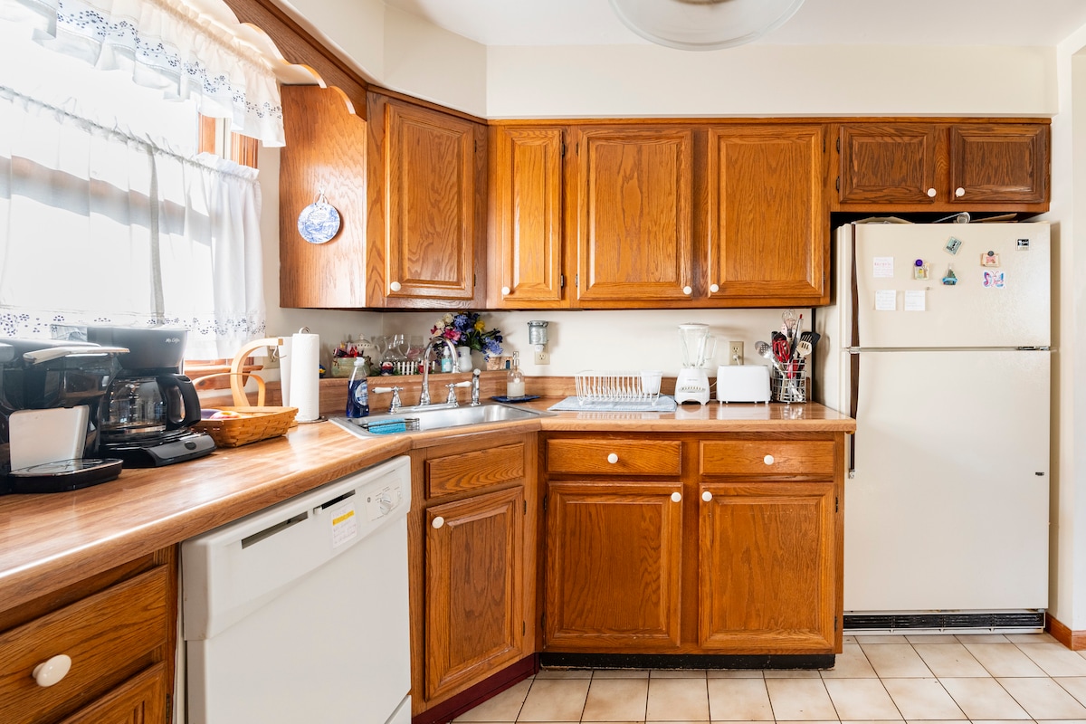 Escapa't a un apartament privat de 557 m² renovat i impressionant al tercer pis. 1883 Casa de camp victoriana a Blooming Grove, Nova York. Dissenyat per a 1-6 hostes, aquest espai ple de llum ofereix comoditat i encant clàssic en un entorn rural tranquil. Inclou llits de luxe, una banyera amb potes, dutxa amb porta francesa i una cuina petita amb un racó per esmorzar assolellat. Un santuari ideal. Vistes de flors silvestres, camp tranquil i vaques al costat. 3a planta a dalt de dues escales, recompensat amb un espai impressionant i vistes elevades.