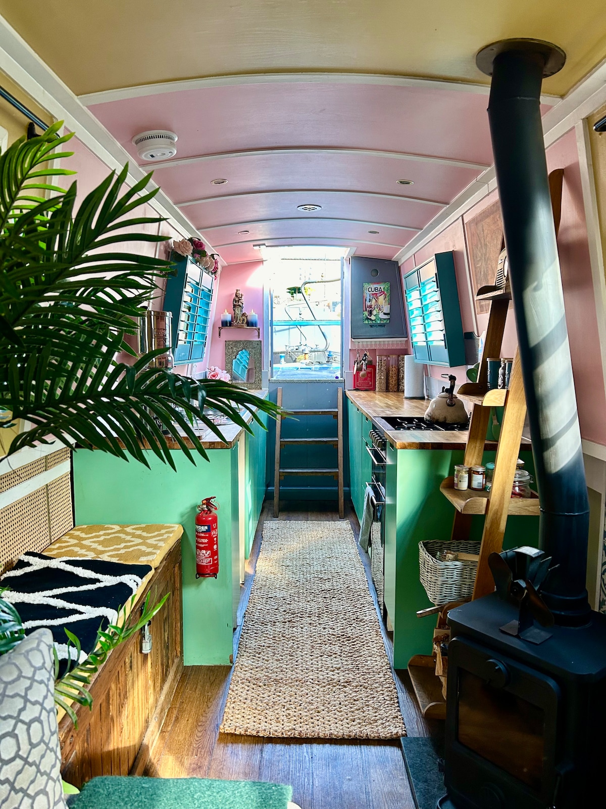 WELCOME TO FLOATING HOMESTAYS An adorable pet-friendly, romantic hideaway in heart of Manchester. Central heating and wood burner. Quirky interior inspired by 1950’s Havana. Showpiece is an honesty bar with wine, spirits & cigars. Kitchen equipped for cooking with some light breakfast provided (coffee/tea/cereal/milk/OJ). Shower/sink/toilet. Double bed & single couch. Bedroom overlooks an attractive plant filled deck to enjoy the city whilst remaining sequestered from the outside world.