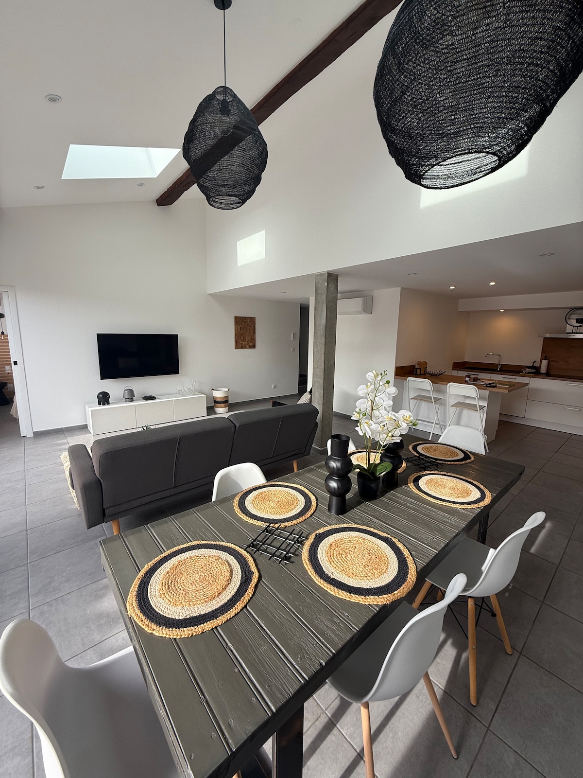 Can signifie “chez” en catalan : Can Montgaillard c’est “chez Montgaillard” un hommage aux grands-parents de Cyril. Ce projet familial a donné naissance à trois lieux indépendants, pensés pour allier charme, confort et élégance. À seulement 5 km des plages, ce logement d’exception situé au cœur de Saint-Laurent-de-la-Salanque, accueille jusqu’à 5 personnes. Piscine sur terrasse, volumes climatisés, deux suites avec salles de bains privatives, garage… tout est pensé pour un séjour inoubliables.