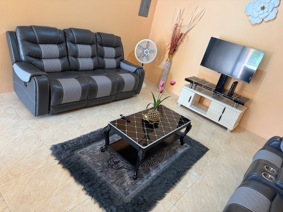Modern 2-bedroom Retreat in Clarendon! Just 3 minutes away from Millennium Mall, popular restaurants, supermarket, gas station, Highway 2000, close to Murrays Fish & Jerk Hut, and much more! Enjoy a fully equipped apartment with a private terrace, A/C, fully kitchen, Wifi & Smart TV. Book now and enjoy Clarendon with comfort, convenience, and a touch of luxury!