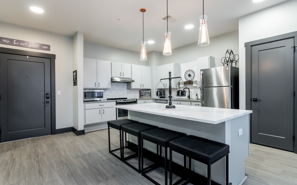 Et donem la benvinguda als allotjaments de luxe de Norton Commons. El barri de Norton Commons és un desenvolupament extremadament transitable i d'ús mixt on hi ha botigues, bars i cafeteries. Aquesta unitat s'ofereix com a col·laboració amb Watch Hill Proper, la destinació de bourbon més important de Louisville. Aquesta col·laboració única permet als nostres hostes participar en experiències exclusives de bourbon, degustacions, maridatges de menjar i fins i tot una selecció de barrils privats.
