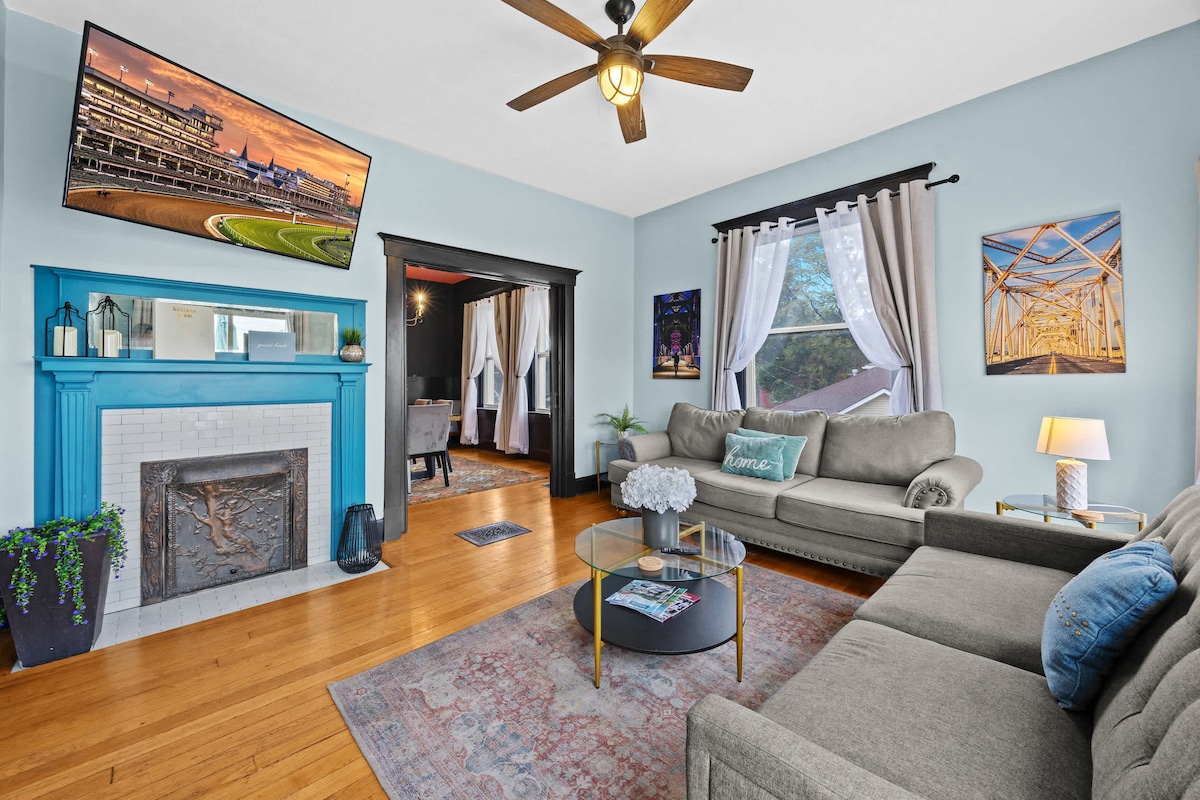 Stay in Jeffersonville’s historic district at our charming Riverview home, just one block from restaurants, pubs, shops, and the scenic riverwalk. Enjoy front and back porches, free parking with charging stations, and walkable access to events in the Dora District. Only 1 mile from downtown Louisville and 6 miles from Churchill Downs perfect for a Derby stay, this unit is ideal for groups, families, and travelers. With Wi-Fi, an equipped kitchen, & self check-in, your perfect getaway awaits!